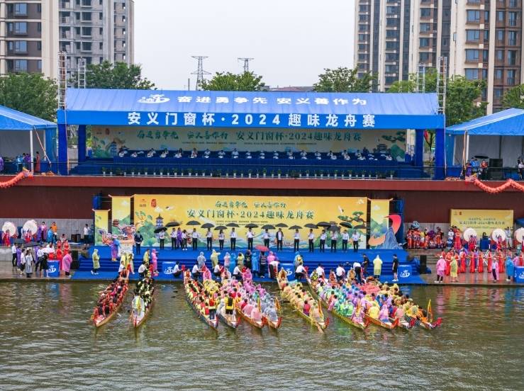 6月10日,安义门窗杯·2024趣味龙舟赛在风景秀丽的北潦河市民公园开赛。龙舟赛由安义县人民政府、南昌市体育局及南昌市文化广电旅游局主办,来自安义县部门和各乡镇及县外队伍参赛乘“龙”破浪、飞桨争渡,与广大市民及游客同庆端午、共享传统文化盛宴。