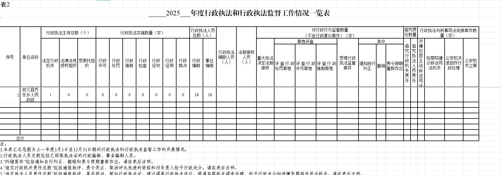 乔乐乡2025年度行政执法和行政执法监督工作情况一览表