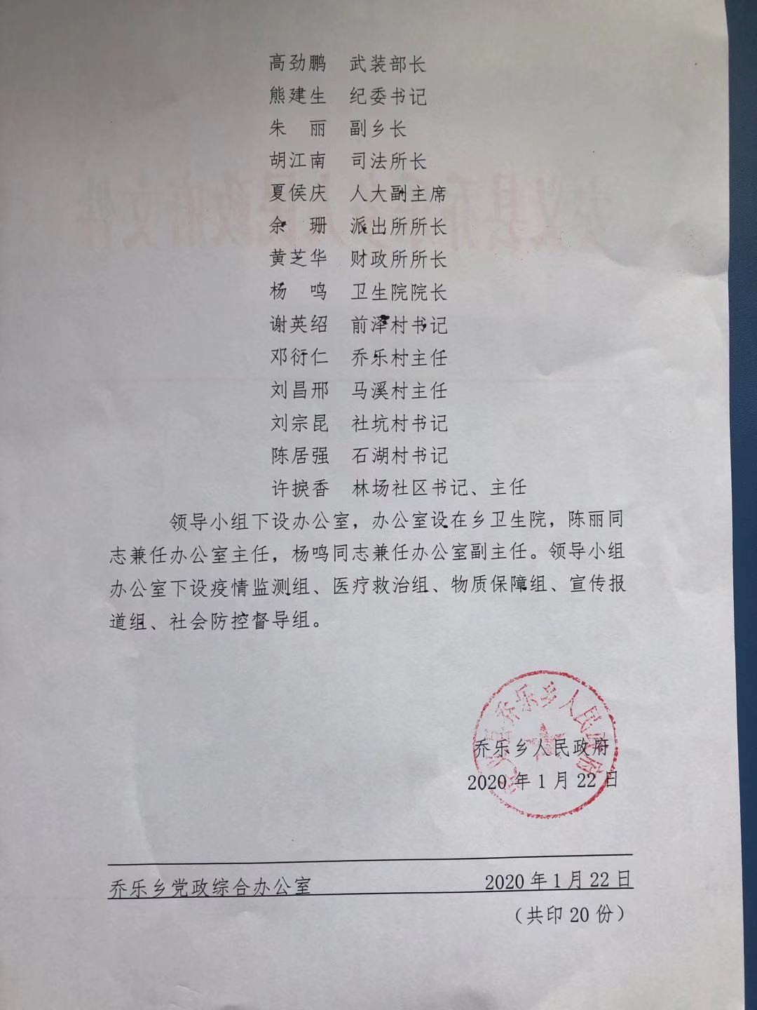 关于成立乔乐乡新型冠状病毒感染的肺炎防控工作领导小组的通知