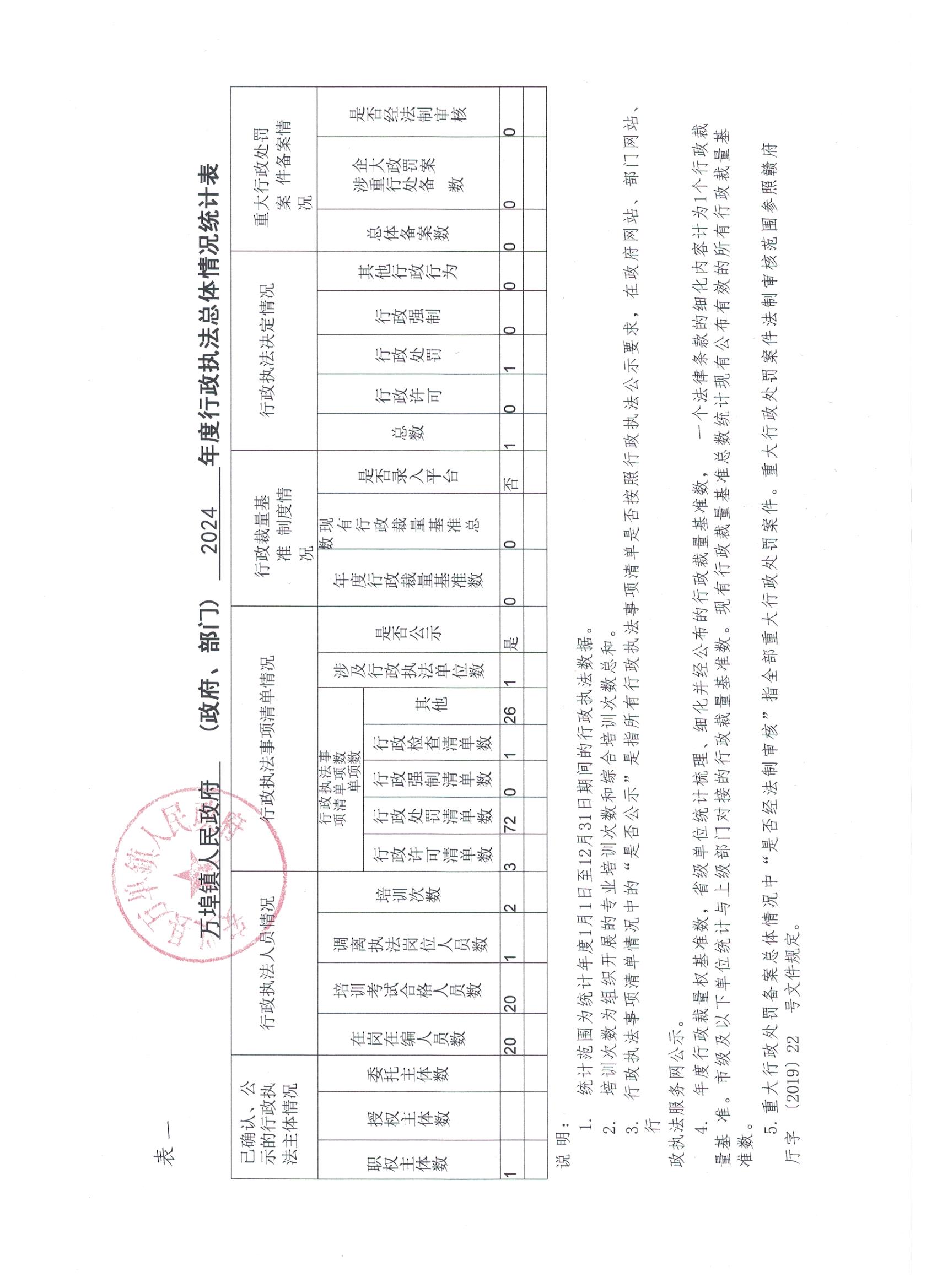安义县万埠镇人民政府年度行政执法数据