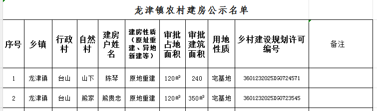 龙津镇建房公示名单