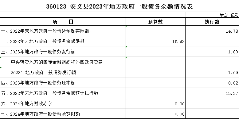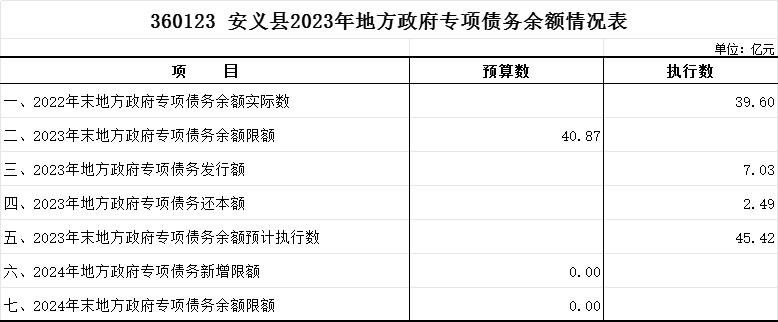 【政府债务余额】安义县2023年地方政府债务情况表