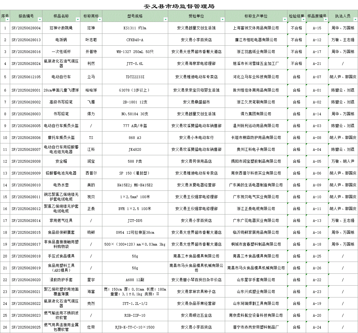 【抽检结果】安义县市监局2025年第一、第二、第三季度抽检产品结果