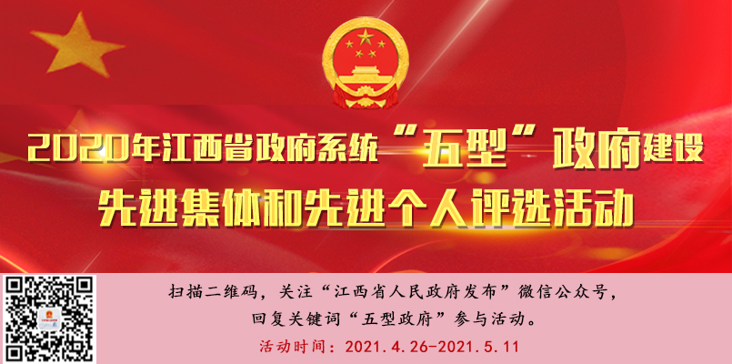 为在全省政府系统选树一批“五型”政府建设先进典型,大力营造崇尚先进、学习先进、争当先进、赶超先进的浓厚氛围,持续推动“五型”政府建设走深走实,助力全省高质量跨越式发展,奋力谱写建设社会主义现代化国家江西篇章,由江西省“五型”政府建设领导小组办公室(以下简称省“五型”办)主办的《江西省政府系统“五型”政府建设先进集体和先进个人评选活动》网上投票于2021年04月26日至2021年05月11日开展。