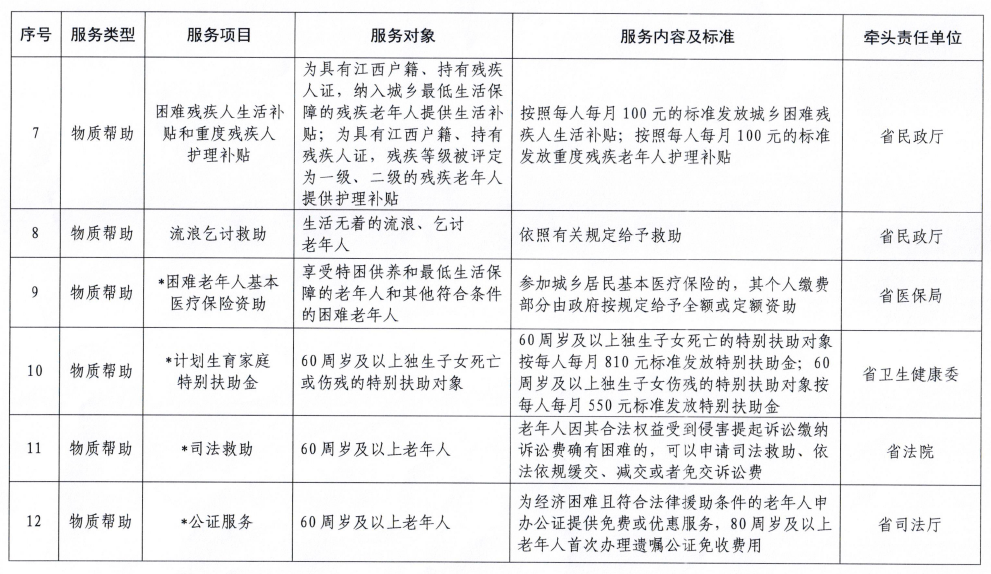 江西省基本养老服务清单(2023年版)