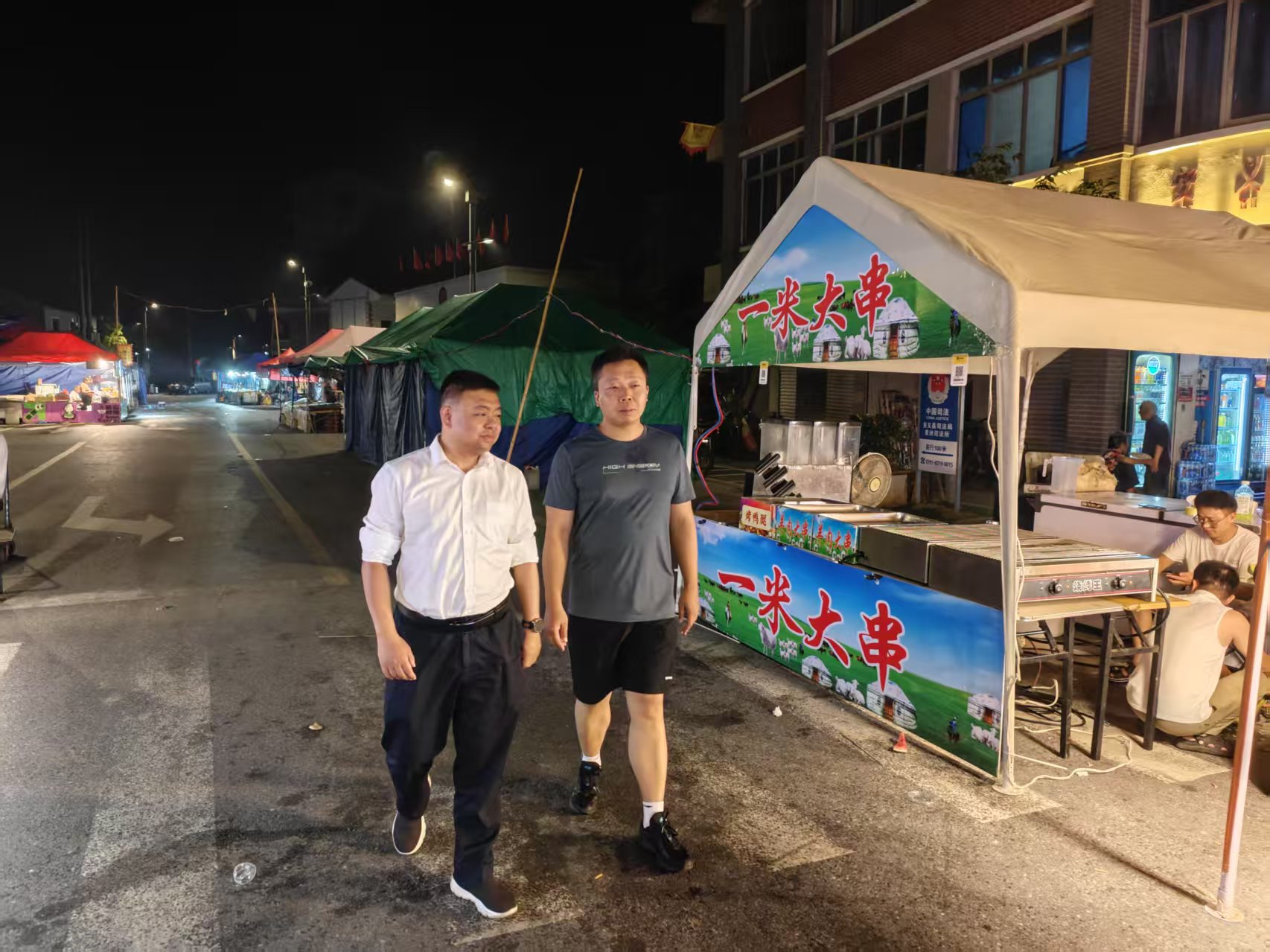 6月5日晚,黄洲镇党委副书记、镇长刘啸实地察看“五月十三打黄家洲”市场环境、经营秩序,和商户、消费者交谈,详细询问对市场的感受和建议。常务副镇长王乐杰陪同察看。