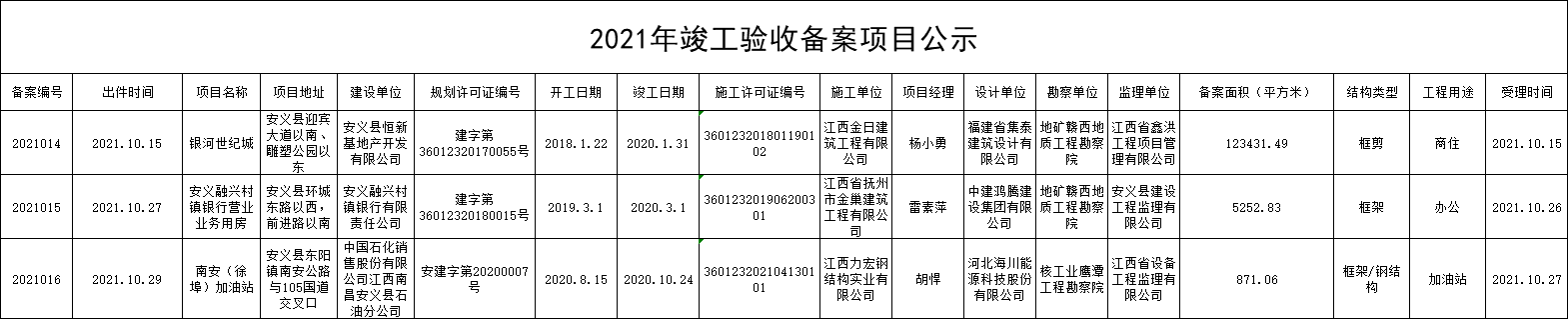 安义县行政审批局建设工程竣工验收备案结果公开2021年(10月)