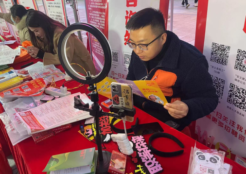 现场同步开展线上直播带岗活动,依托抖音直播平台,发挥新媒体特色效应,且详细介绍用人单位和岗位需求情况,为求职者和用人单位打开求职招聘的双向通道。