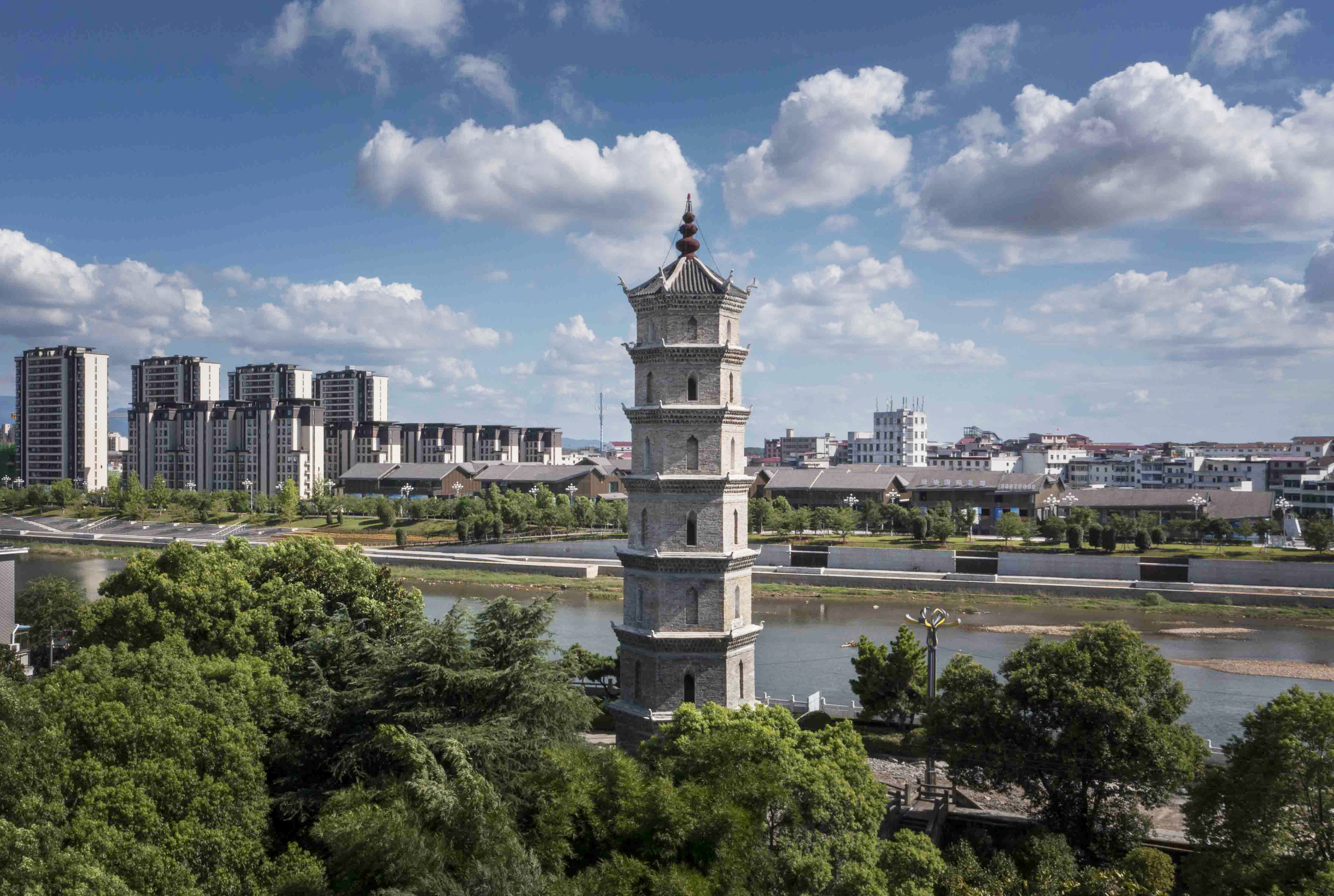 原名龙文塔,位于潦河北岸安义大桥东约110米处。始建于明崇祯二年(1629年),重建于清雍正十二年(1734年),由吏部郎中徐大相等倡建,建至五级,款尽停工。清雍正十二年(1734年),知县宫大鹏续建七级六棱砖塔,塔形如笔,谓之“文风”,谐音曰“文峰塔”。塔高23米,逐层有板梯迭上,可极目远眺。1978年,塔顶柱糜烂,县政府拨款重修,外涂丹垩,恢复原貌。1989至1991年全县各界人士捐资17万元修缮后,更加凌霄超逸,灵光粲然。为江西省重点文物保护单位。
