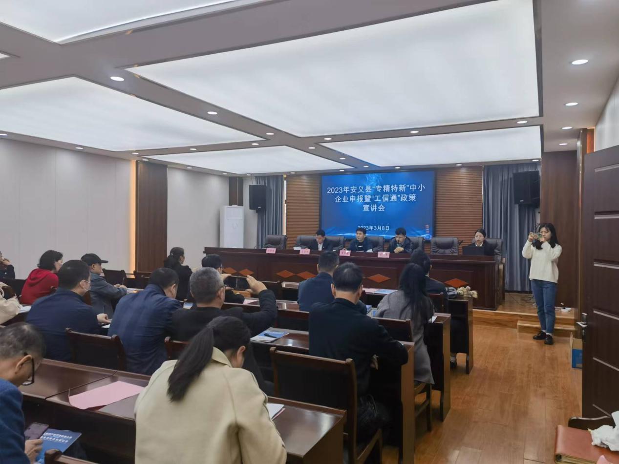 3月8日在安义县高新产业园区召开了安义县专精特新中小企业申报暨“工信通”政策宣讲会,会议由县高新园区管委会副主任王亮主持,县科技工信局副局长龚声龙就申报的背景意义进行了介绍并对培训会提出了几点希望。参会的有县高新园区经发办主任龚梦佳、中国银行安义支行副行长丁联华、江西企政知识产权代理有限公司团队,并邀请了49家准备申报专精特新中小企业的负责人参加了宣讲会。