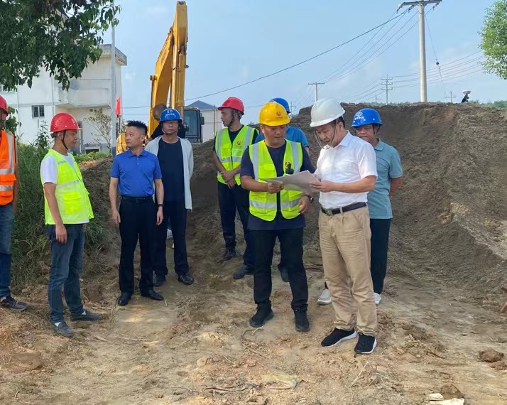 吴海勤查看了灌溉供水管线管道安装、大坝右坝肩石渣挖装、导流明渠护坡修整等施工现场,详细了解了工程建设进度、人员到岗到位及施工作业管理。