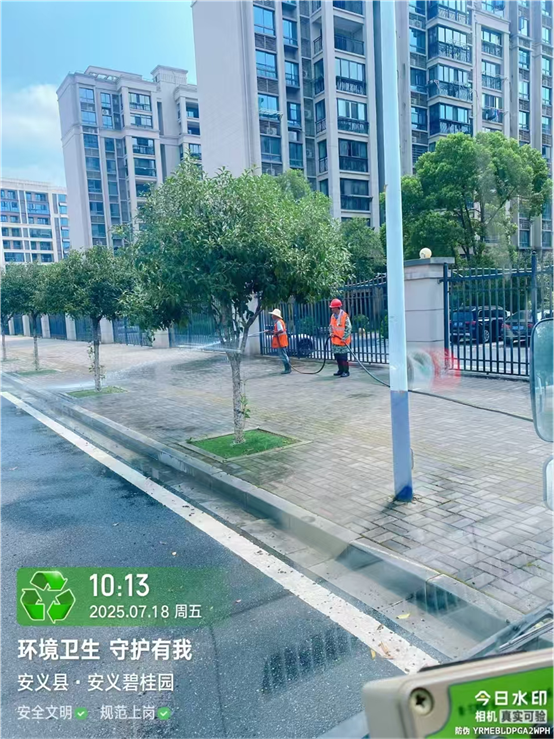 认真做好防暑降温工作。环卫部门实行“错峰作业制”,清晨4点始,环卫车辆便已穿梭在主次干道,利用低温时段完成首轮深度作业;午后2点左右,雾炮车、洒水车再出动,通过喷雾降尘为路面“降温补水”;环卫工人则重点清洗人行道缝隙、公交站台等机械作业盲区,手持高压水枪细致冲刷每一处污渍。据统计,高温“洗城”日均出动作业人员32人次、日均清洗垃圾桶180个、冲洗道路面20000余平方米。
