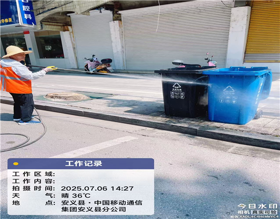 烈日下,环卫制服被汗水反复浸透,贴在皮肤上格外刺眼;据统计,高温“洗城”日均出动作业人员32人次、日均清洗垃圾桶180个、冲洗道路面20000余平方米。环境干净整洁的背后,是“环卫橙”在烈日下的执着坚守,用汗水换来了城市的洁净与清爽。