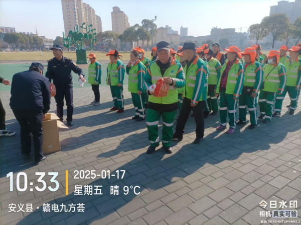 1月17日上午,我县绿地广场迎来了一份特别的关怀与温暖。肯德基(赣电九方荟店)积极响应社会责任,以实际行动传递爱心,为县城管执法局公园广场股的所有保洁员送上了一份真挚的慰问——每人一份全家桶,这份礼物不仅是对他们辛勤工作的认可,更是对他们默默奉献精神的崇高敬意。