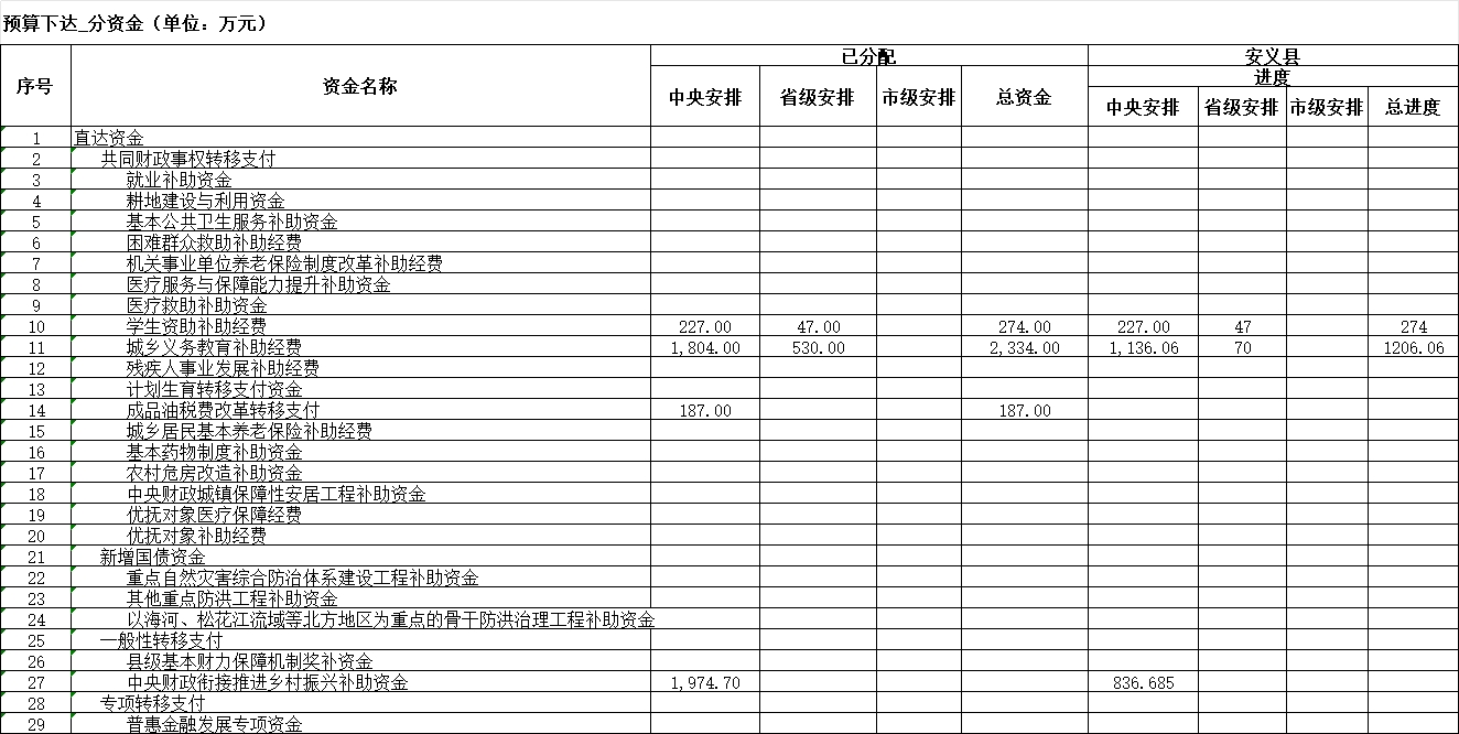 安义县2025年财政直达资金分配使用情况