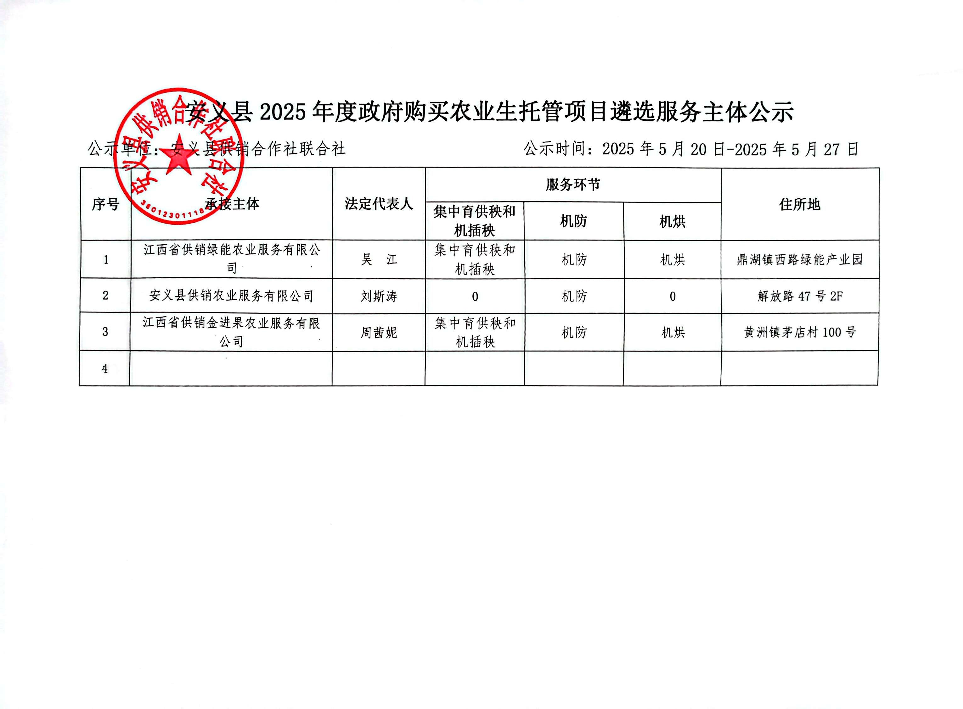 安义县2025年度政府购买农业生托管项目遴选服务主体公示