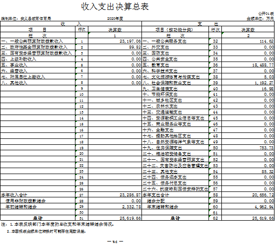 本部门2020年度收入总计 25619.66万元,其中年初结转和结余 2332.78 万元,较2019年减少1997.57 万元,下降46.13%;本年收入合计23286.87万元,较2019年增加6114.97 万元,增长35.6 %,主要原因是:教育投入加大。