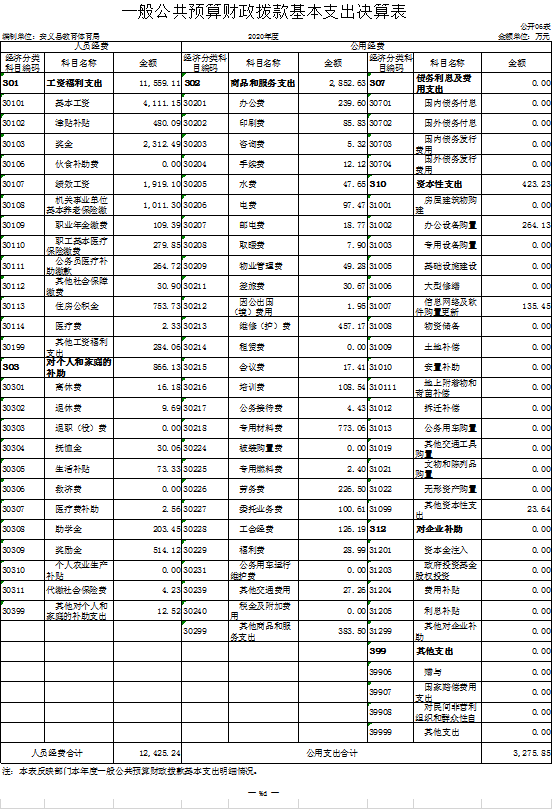第二部分 2020年度部门决算表