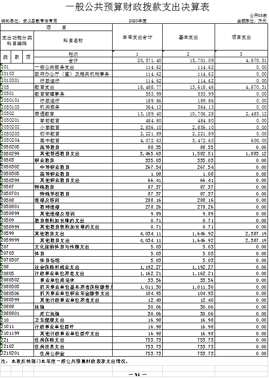 (县直附属单位)2020年度安义县教育体育局本级部门决算