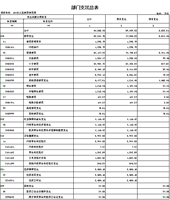 编制人数小计2457人,其中:行政编制11人、参照公务员管理的事业编制0人、全部补助事业编制2446人、部分补助事业编制0人、自收自支事业编制0人。实有人数0人,其中:在职人数小计2386人,包括行政人员9人、参照公务员管理的事业编制0人、全部补助事业人员2377人、部分补助事业人员0人、自收自支事业人员0人;离休人数小计0人;退休人员小计1302人。遗属人数105人。在校学生33132人,其中:高等学校0人、中等专业学校0人,其他33132人。