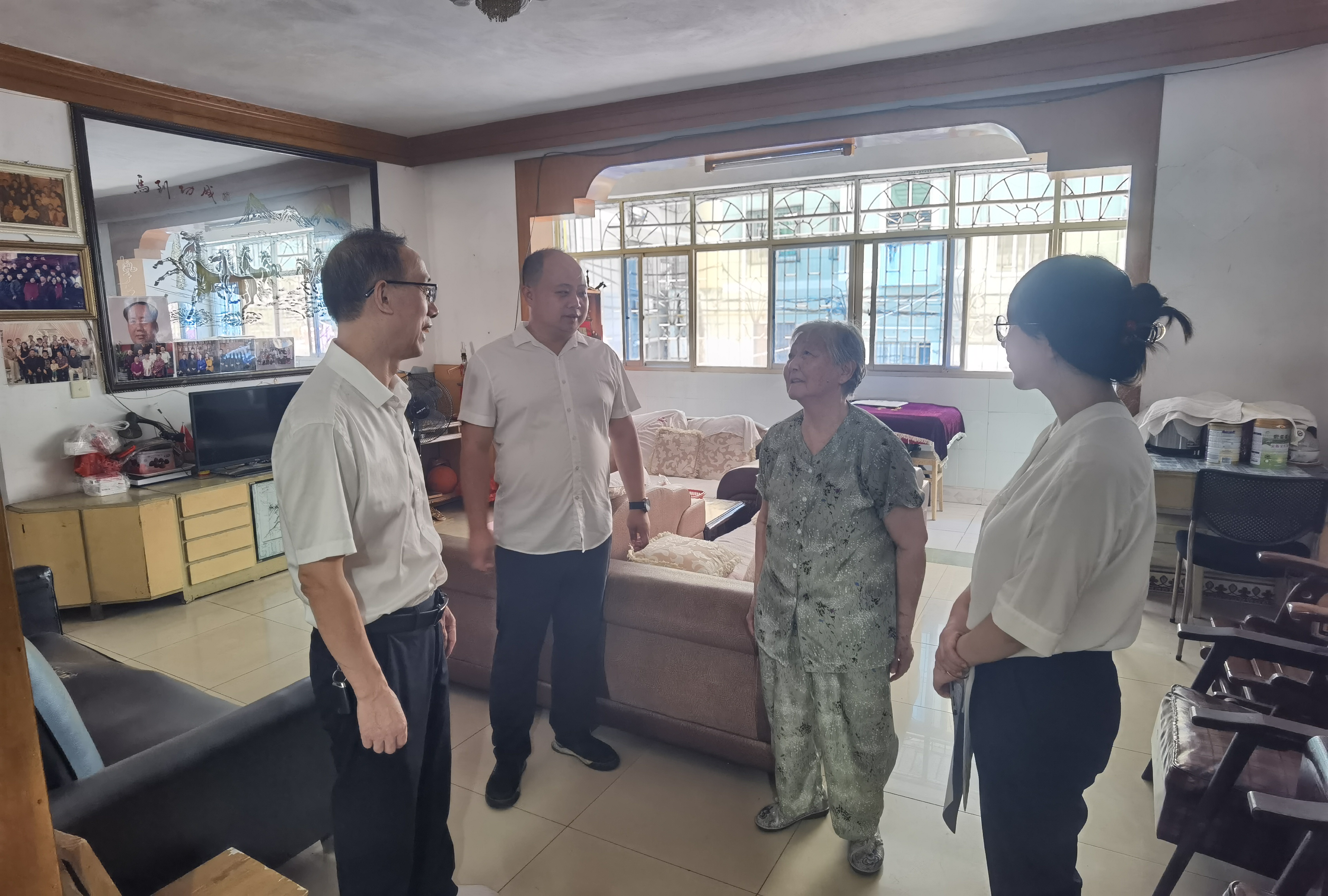 9月16日上午,县民政局党组书记、局长刘宗彪分别在龙津镇和平社区潦河大市场6栋2单元101室周运英家中查看居家适老化改造情况。