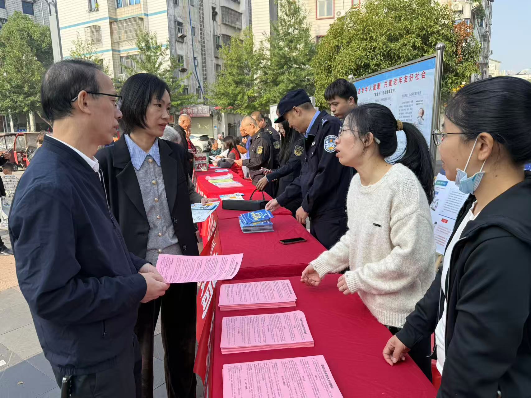 2025年10月28日上午,安义县开展“敬老月”暨重阳节活动宣传,由县民政局、县经发中心、县公安局、县司法局、县人社局、县交通局、县卫健委、县市监局、县金融监管支局、县医保局、县残联等单位在龙津镇向阳社区新时代文明广场开展老龄宣传活动,副县长万菁实地进行调度。