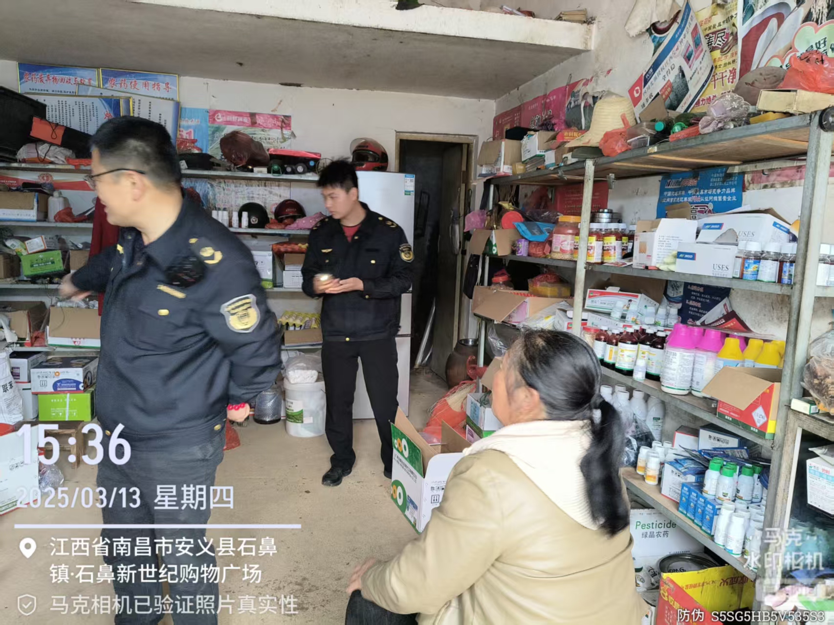 3月13日,县农业综合行政执法大队对石鼻长埠的农资市场开展农资打假检查行动,核实经营资质、购销台账等,同时逐一排查安全隐患,对存在隐患的责令整改。