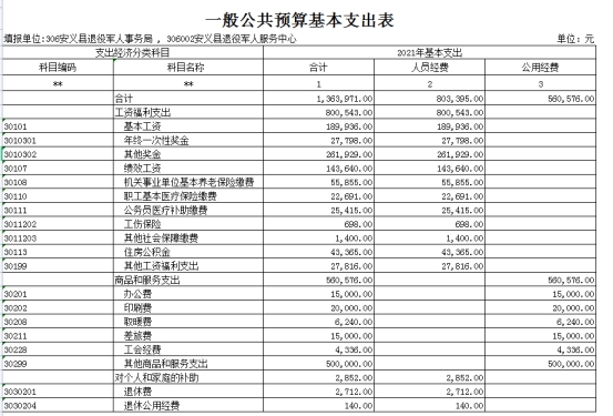 2021年县退役军人服务中心支出预算总额为136.40万元,较上年减少504.14万元,主要是将业务项目资金预算安排在本级机关。其中:
