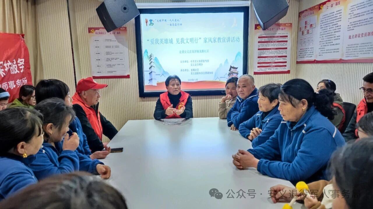 11月27日,安义县退役军人事务局尊崇先锋队深入龙腾社区,以“爱我英雄城 见我文明行”为主题开展家风家教宣讲活动,切实推进移风易俗理念深入人心,助力家庭文明建设提质增效,让美好家园在新风正气的浸润中焕发更亮丽光彩。