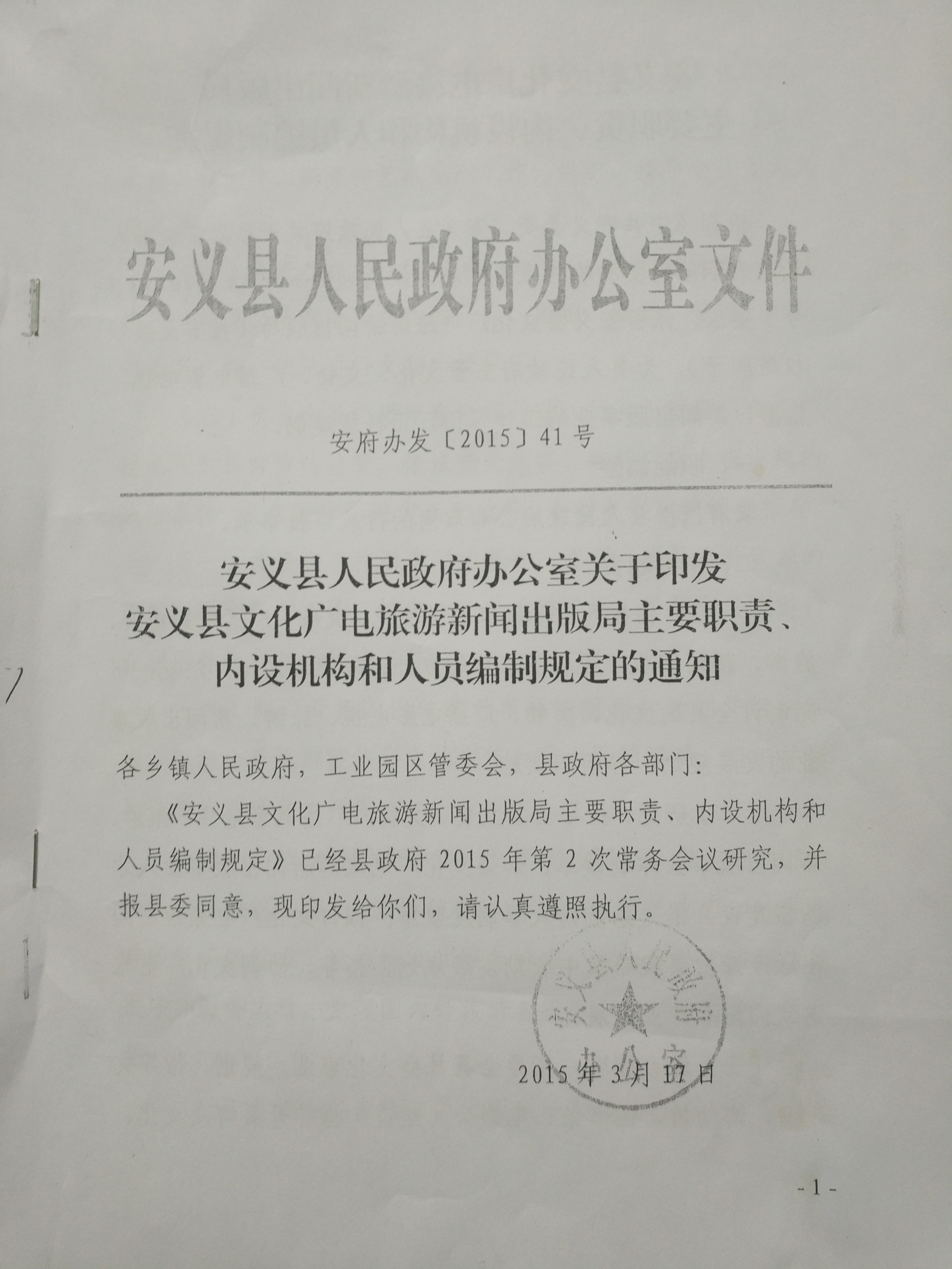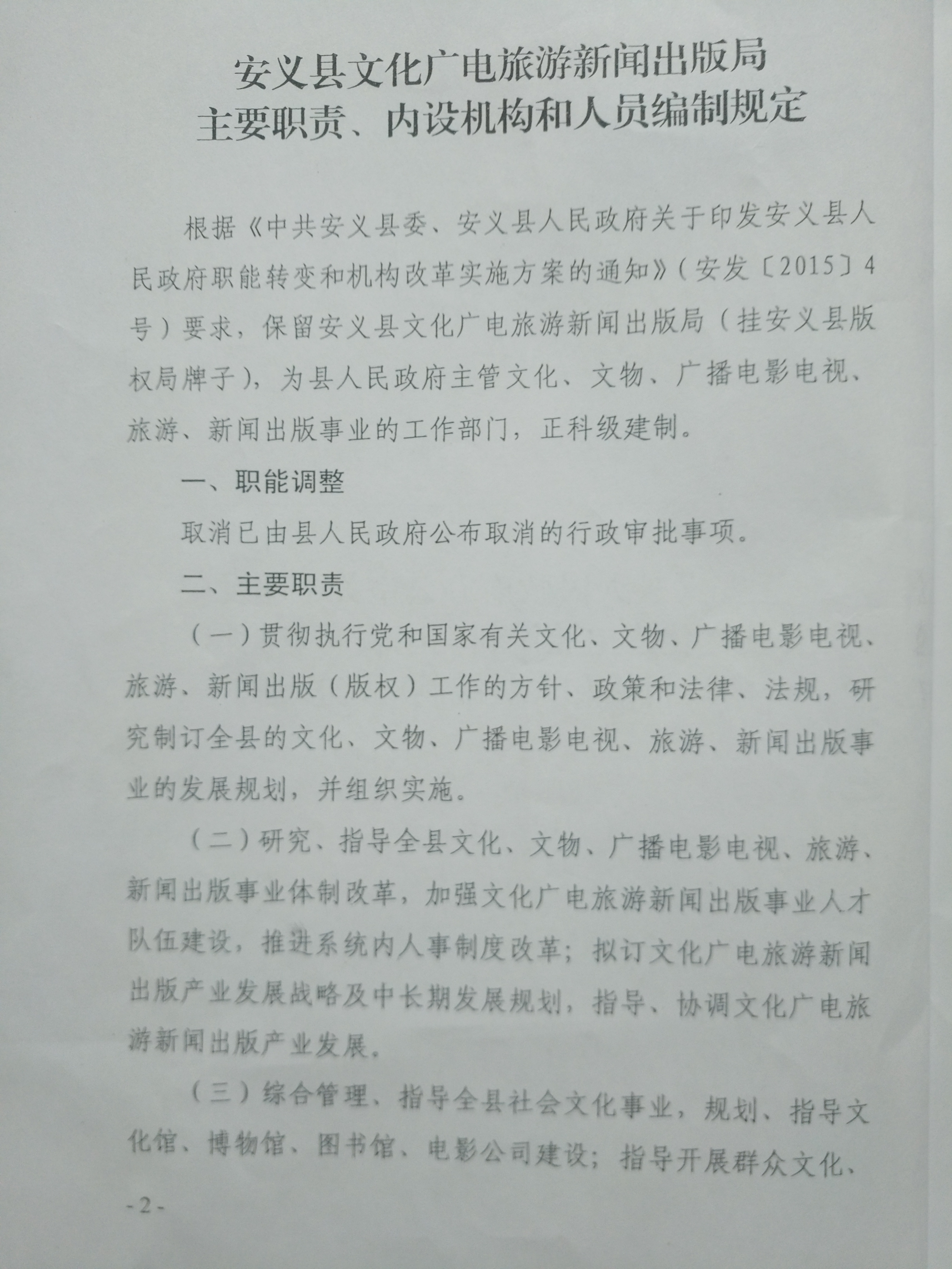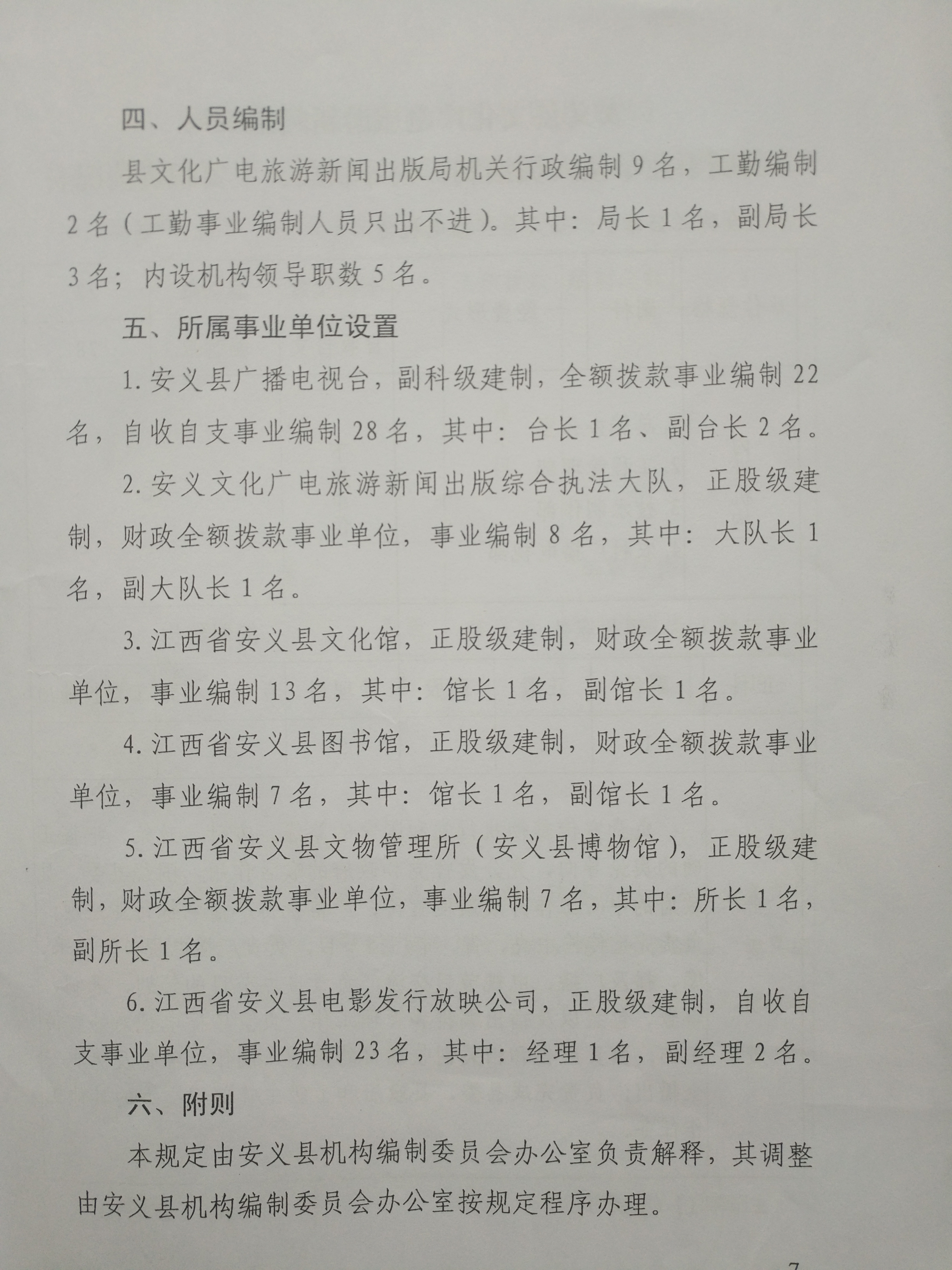 安义县人民政府办公室关于印发安义县文化广电旅游新闻出版局主要职责、内设机构和人员编制规定的通知