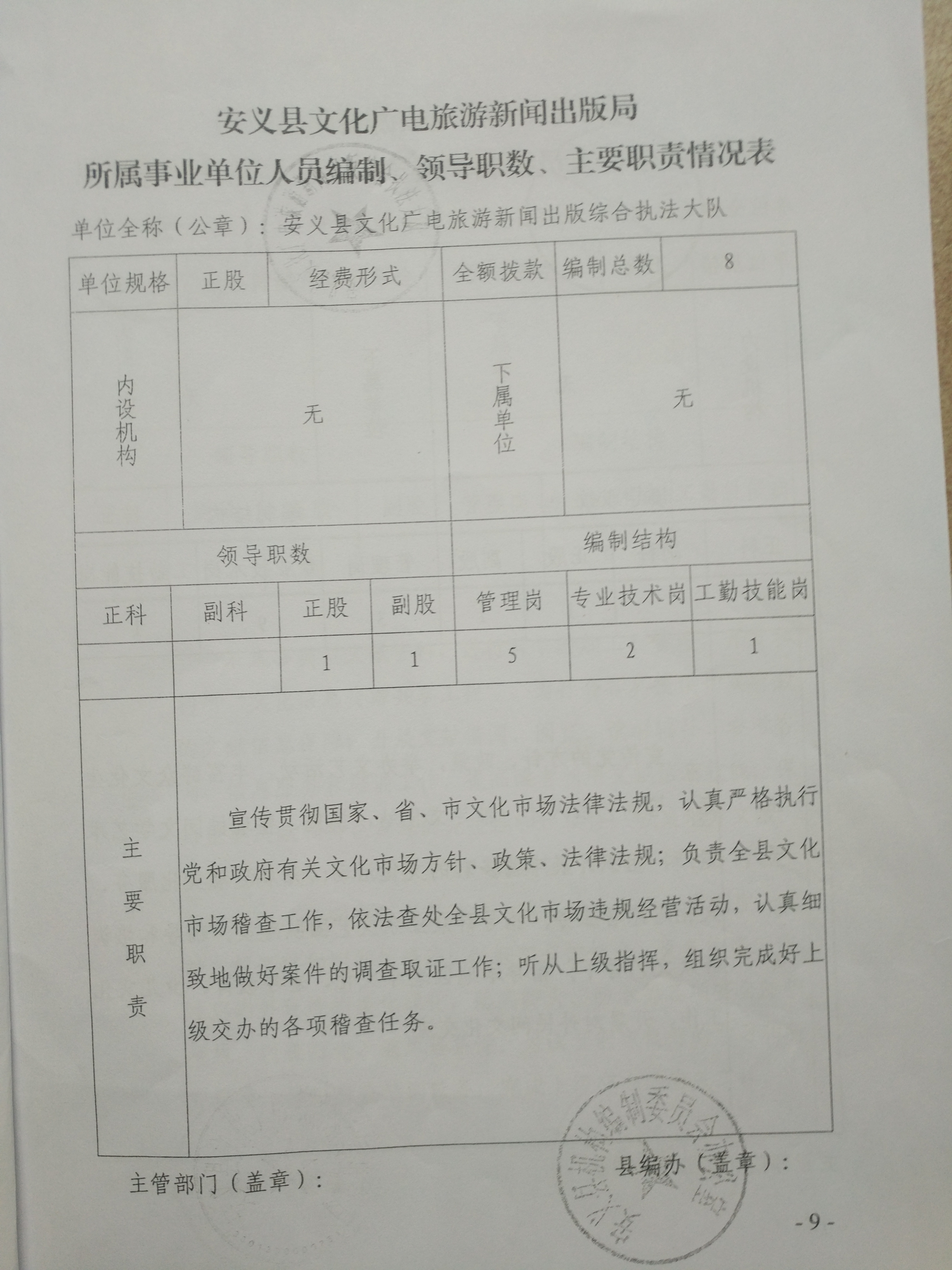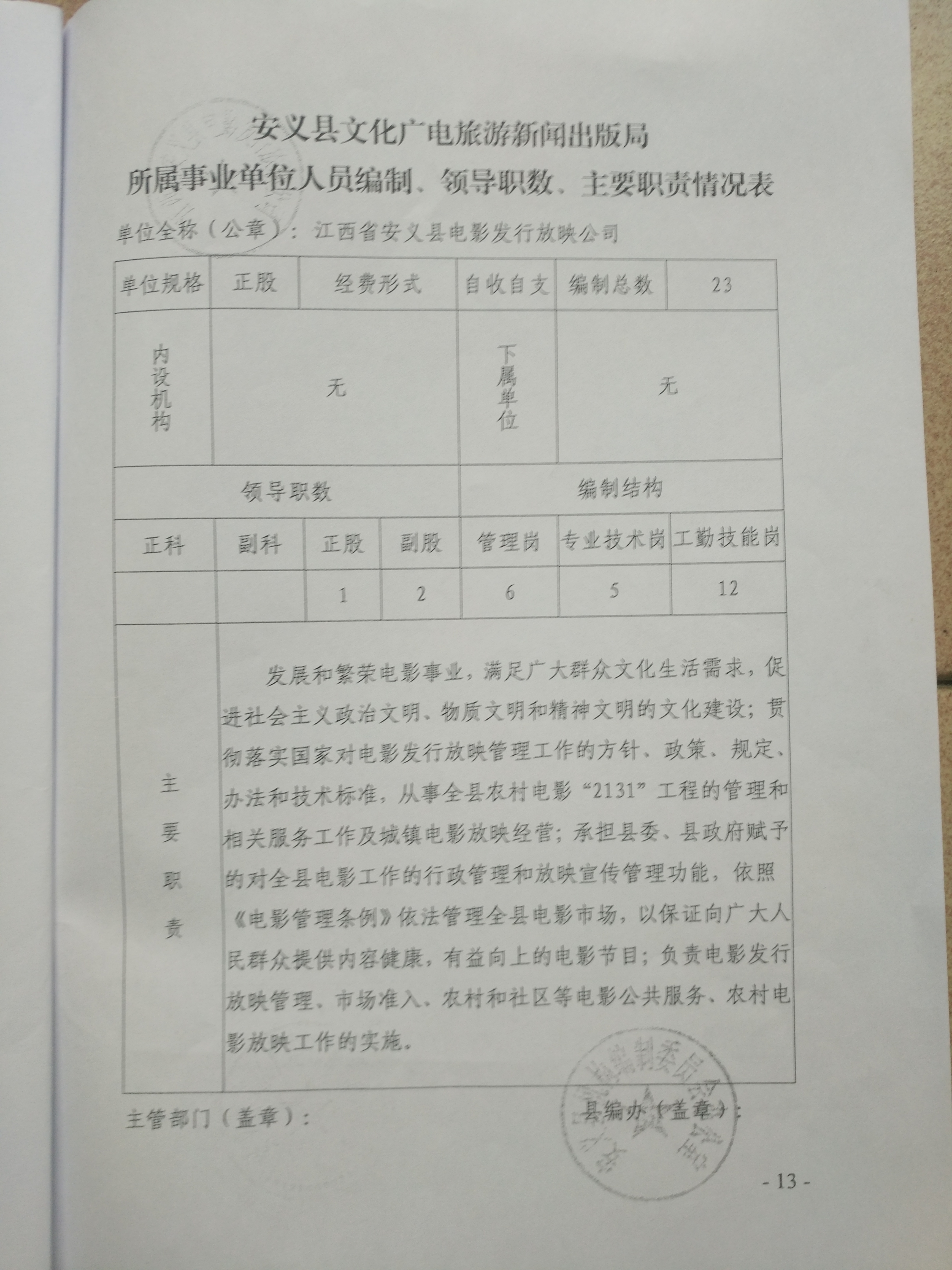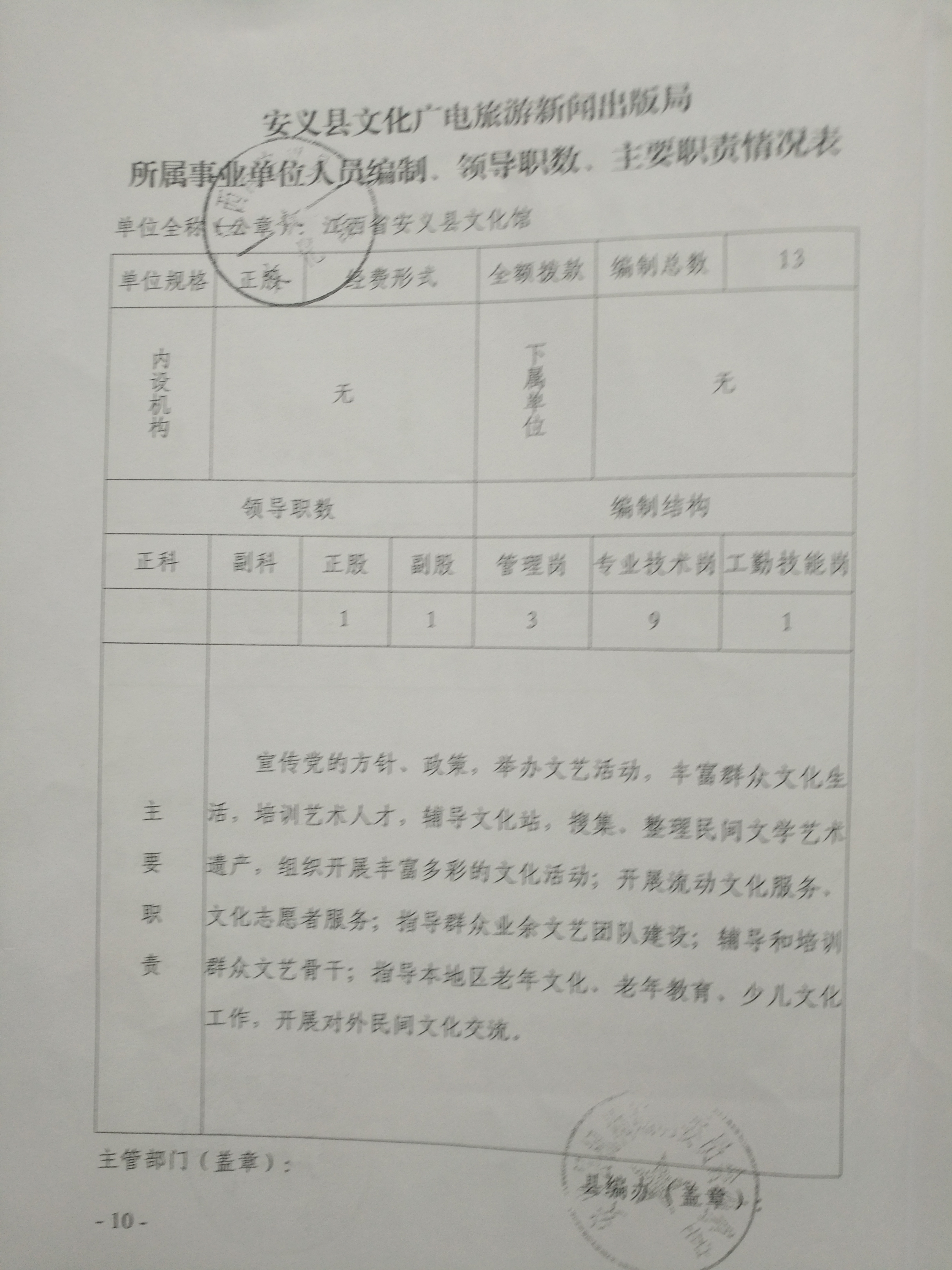安义县人民政府办公室关于印发安义县文化广电旅游新闻出版局主要职责、内设机构和人员编制规定的通知