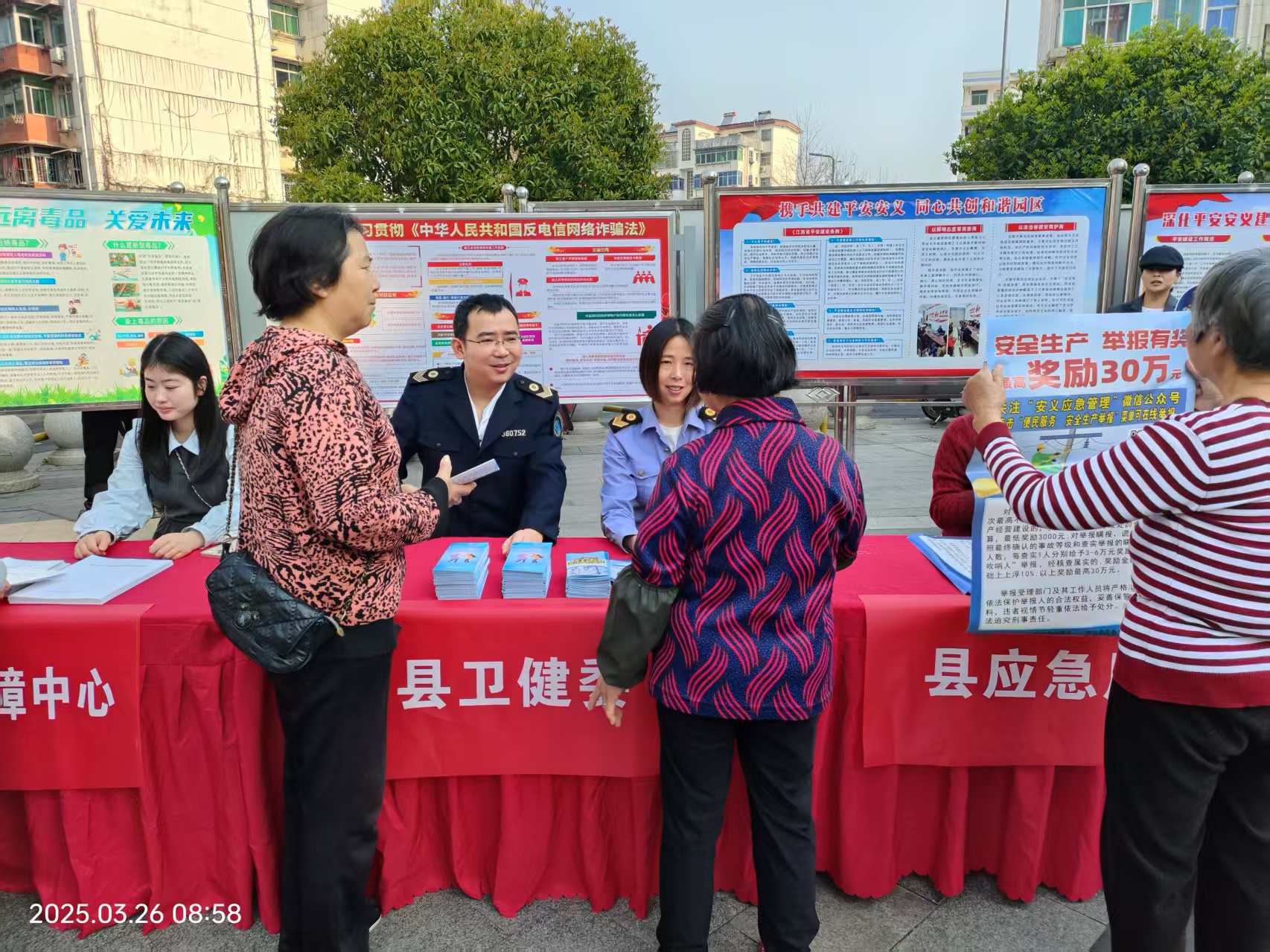 为进一步推进平安建设工作,增强群众安全意识和健康防护能力,3月26日县疾控中心(县卫健执法局)在县杨梅头广场,开展了以“共建平安健康,共享和谐生活”为主题的平安建设宣传月集中日活动。