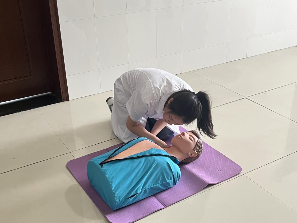 而心肺复苏的教学环节则更为细致,张医生在模拟人上进行规范操作展示。“心肺复苏分秒必争,每个步骤都关乎生死!”张医生一边演示,一边逐项拆解要点:首先迅速观察四周环境,确认安全后拍打溺水者双肩,贴近耳边大声呼喊检查意识;若没有回应,立即向旁人呼救拨打 120,并快速启动急救。针对胸外按压,张医生特别区分了成人与儿童的差异:成人按压位置在两乳头连线中点,儿童则在胸骨中下 1/3 处;无论是成人还是儿童,都需双手交叠、手臂绷直,以每分钟 100 - 120 次的频率、成人 5 - 6 厘米、儿童胸廓 1/3 厚度的深度下压,每次按压后确保胸廓充分回弹。开放气道时,采用“仰头提颏法”打开气道,同时仔细检查并清除口腔异物;人工呼吸时,捏住鼻翼、完全覆盖口唇,匀速吹气 1 秒,以看到胸廓隆起为有效。整套操作严格遵循 30 次按压与 2 次呼吸的比例循环进行,每2分钟重新评估一次呼吸和脉搏,只要患者未恢复自主呼吸,就持续施救直至专业医护人员接手。专业细致的演示,让复杂的急救流程变得清晰明了。