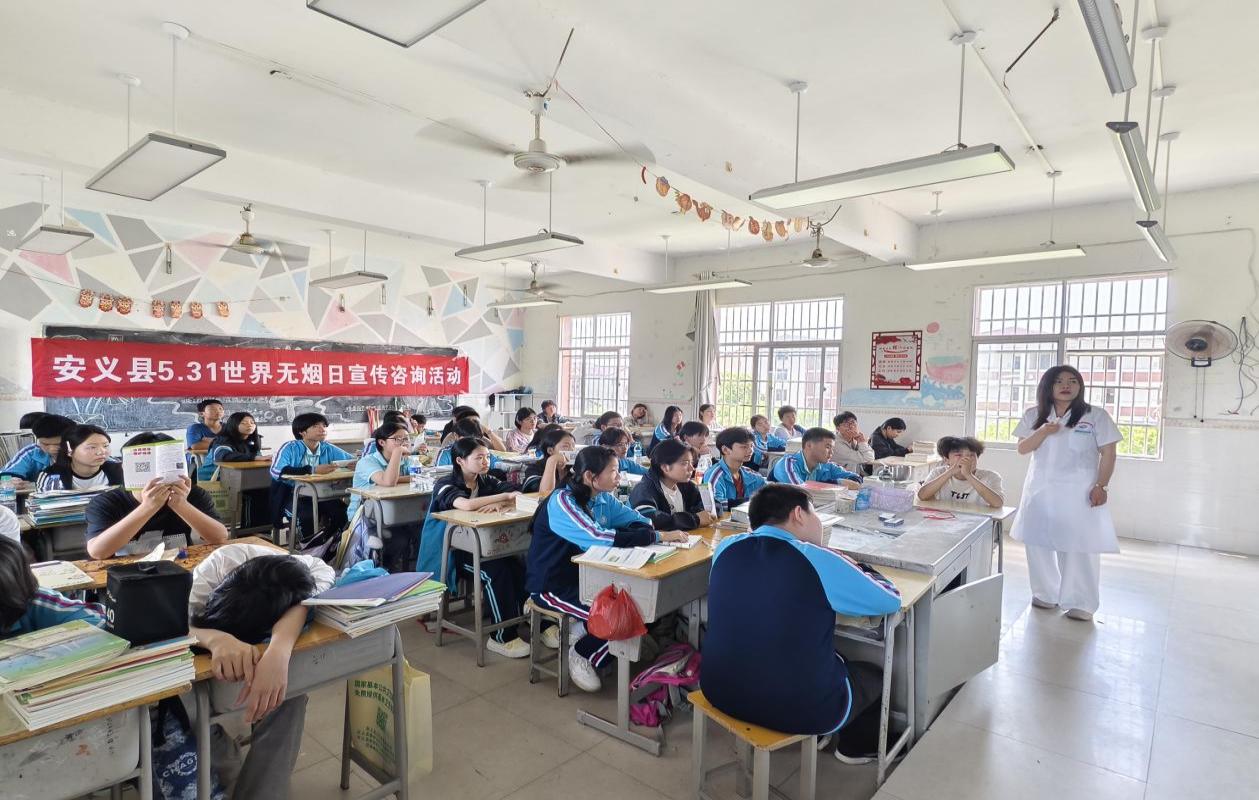 今年5月31日是第38个“世界无烟日”,主题是“拒绝烟草诱惑,对第一支烟说不”。为普及烟草危害知识,倡导健康理念,提高群众健康意识,在安义县卫健委的组织下,近日,安义县疾控中心(县卫健执法局),县、乡医疗机构分别进学校、进各自所属辖区的社区居委会开展丰富多彩的宣传咨询活动,大力营造活动氛围。