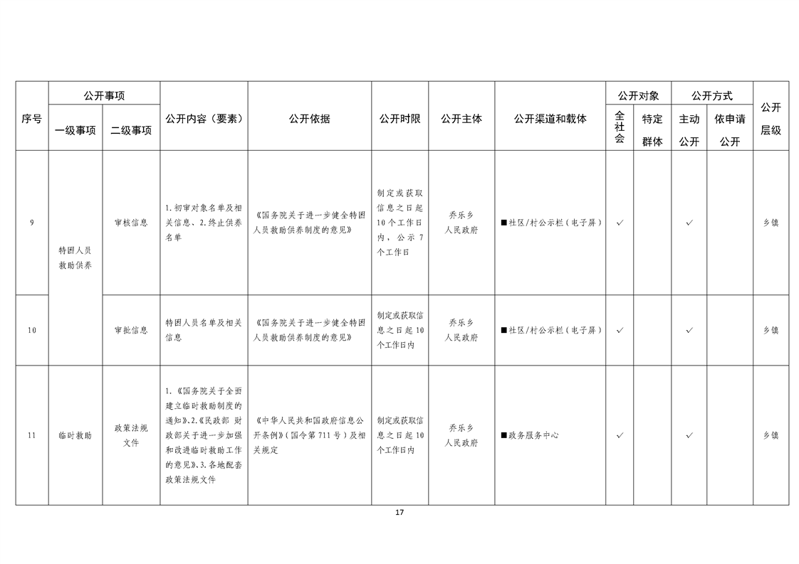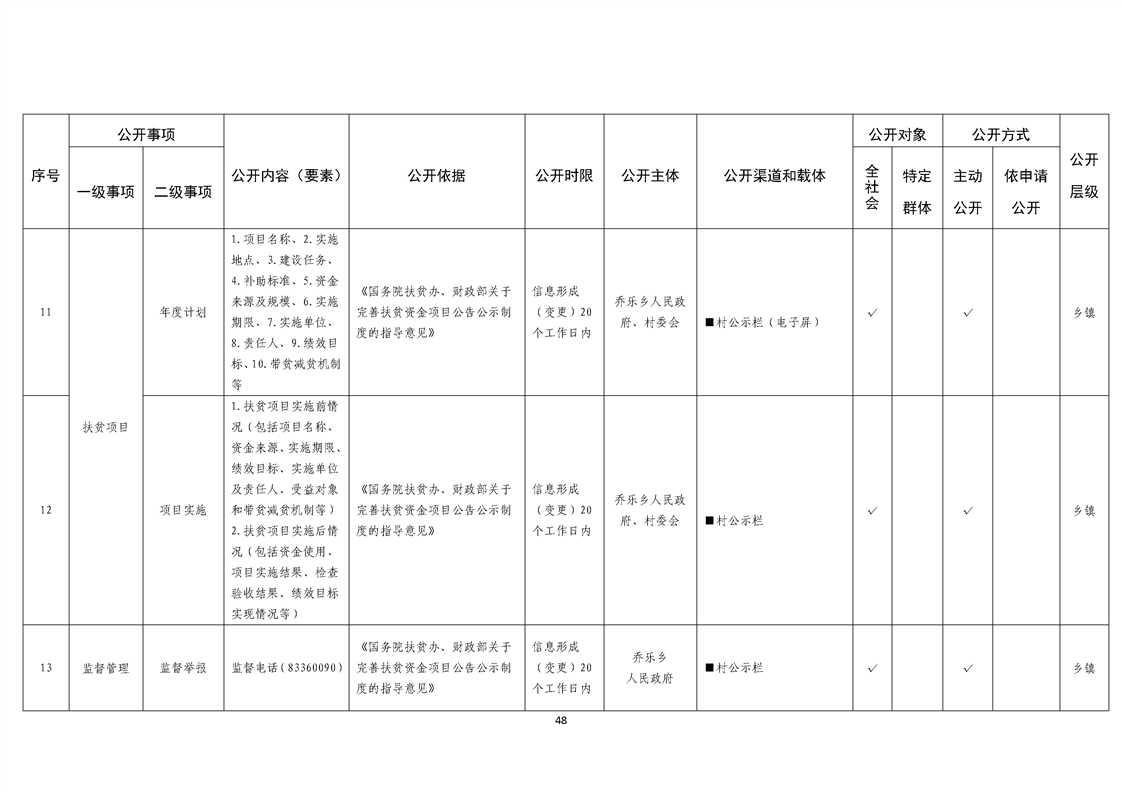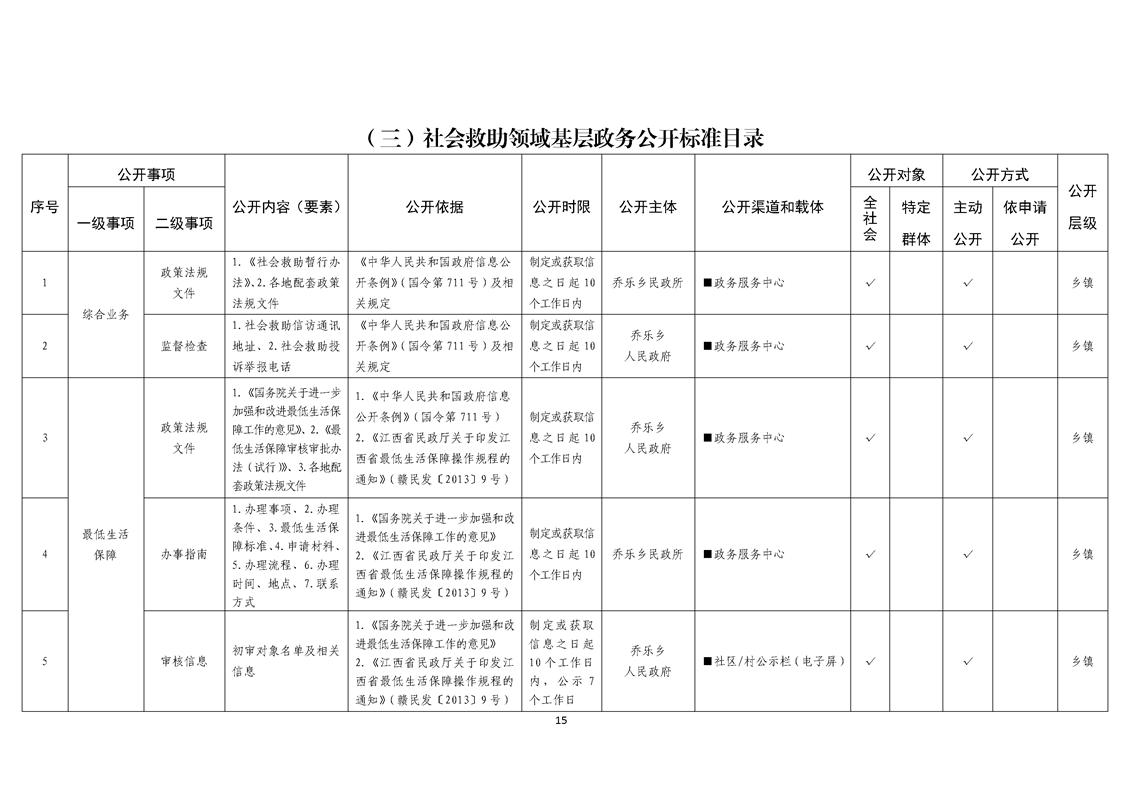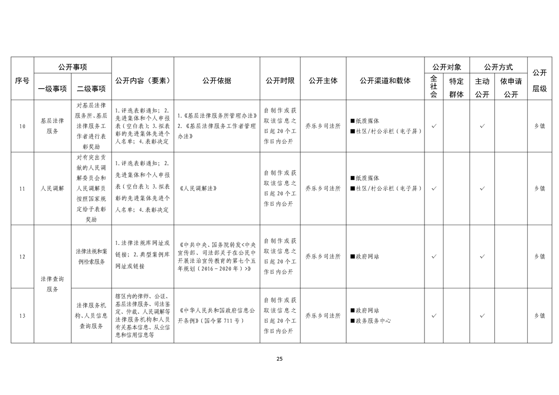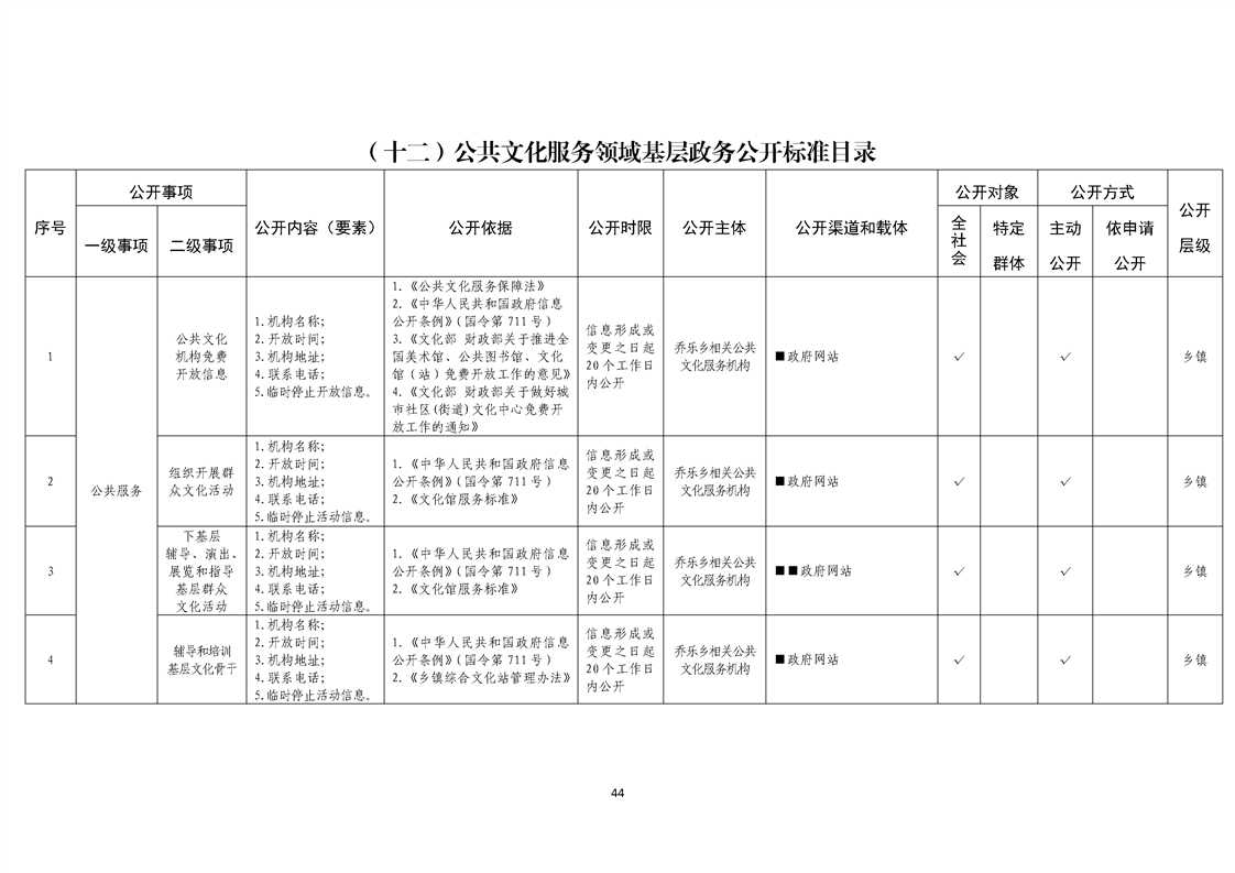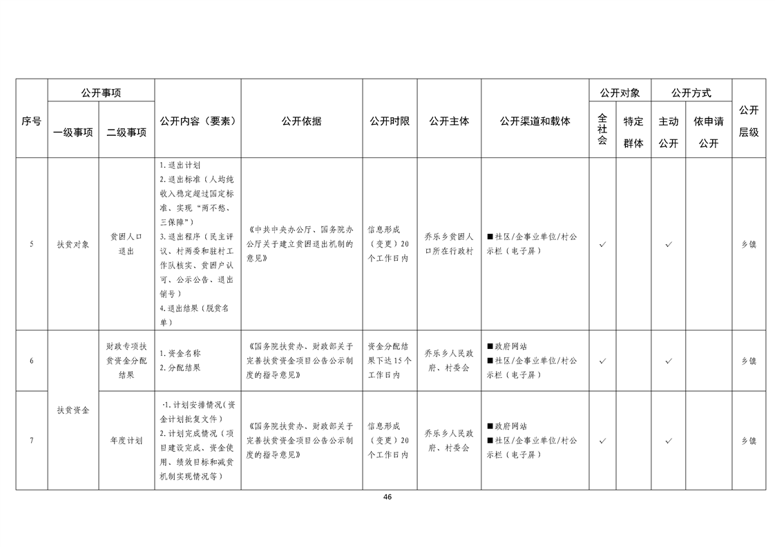 乔乐乡基层政务公开事项标准目录
