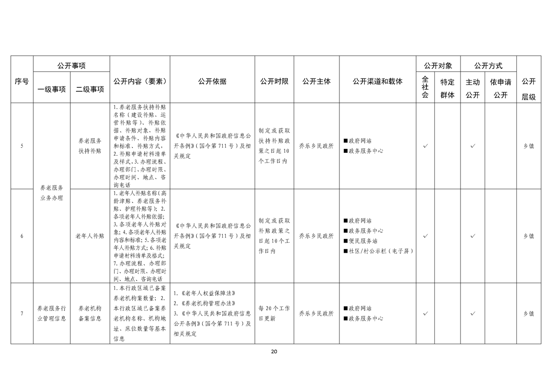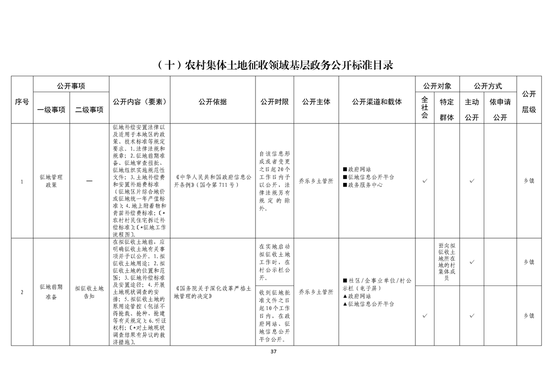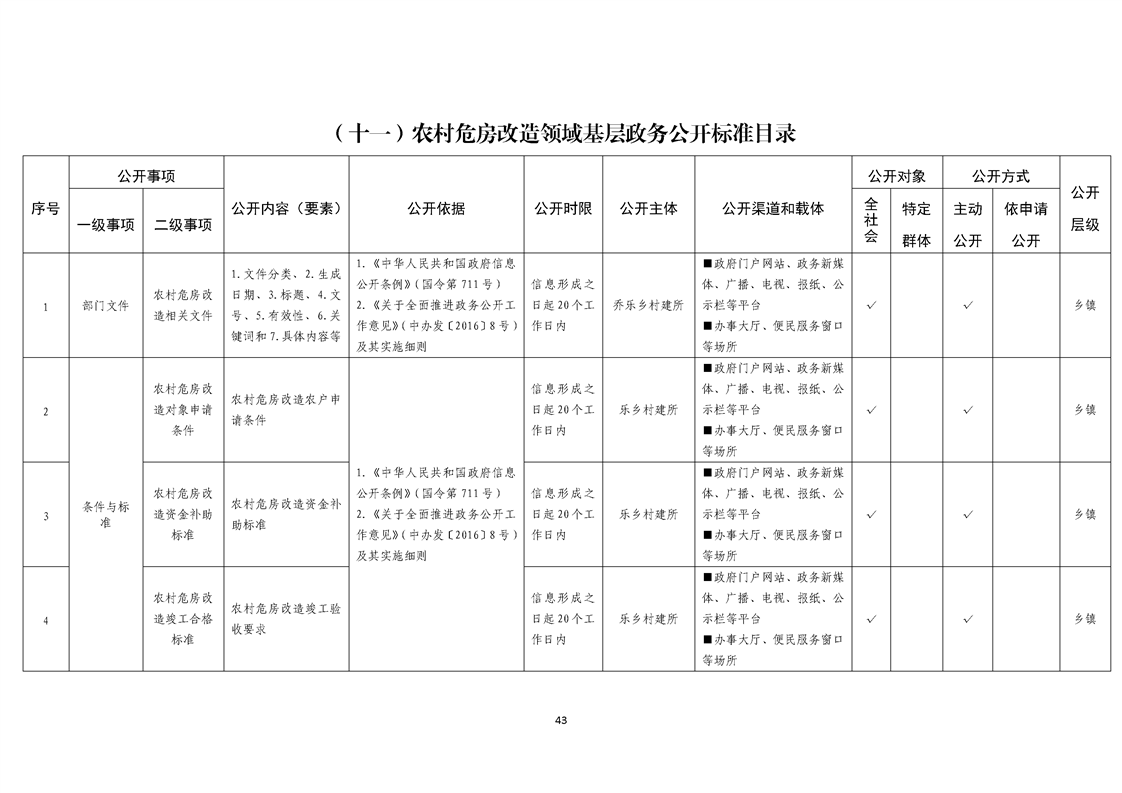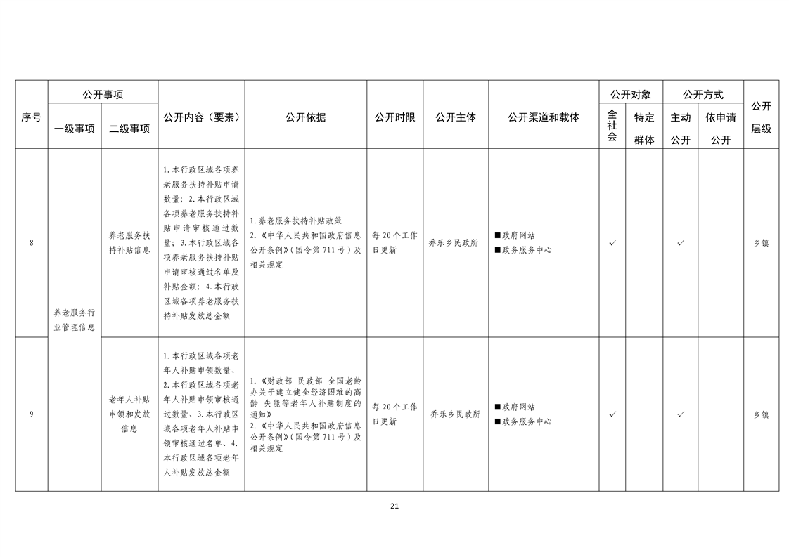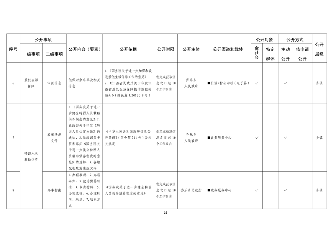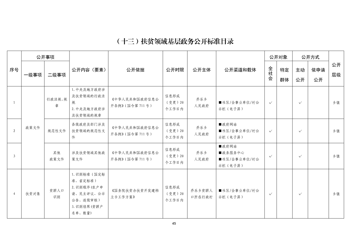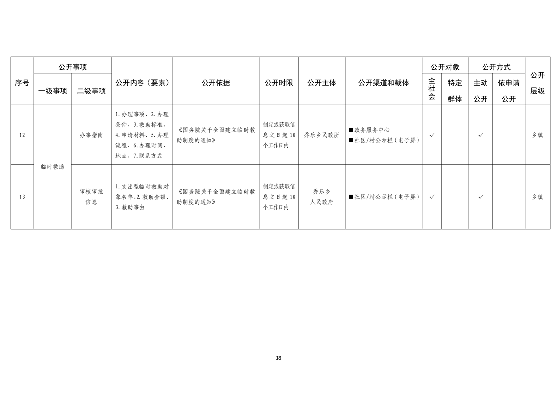 乔乐乡基层政务公开事项标准目录