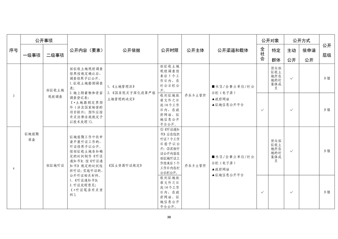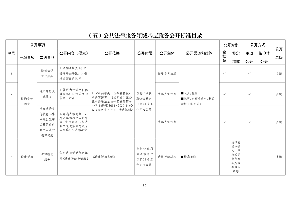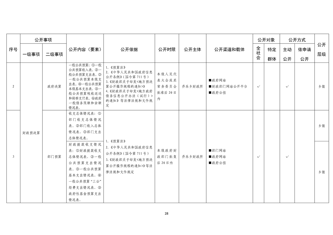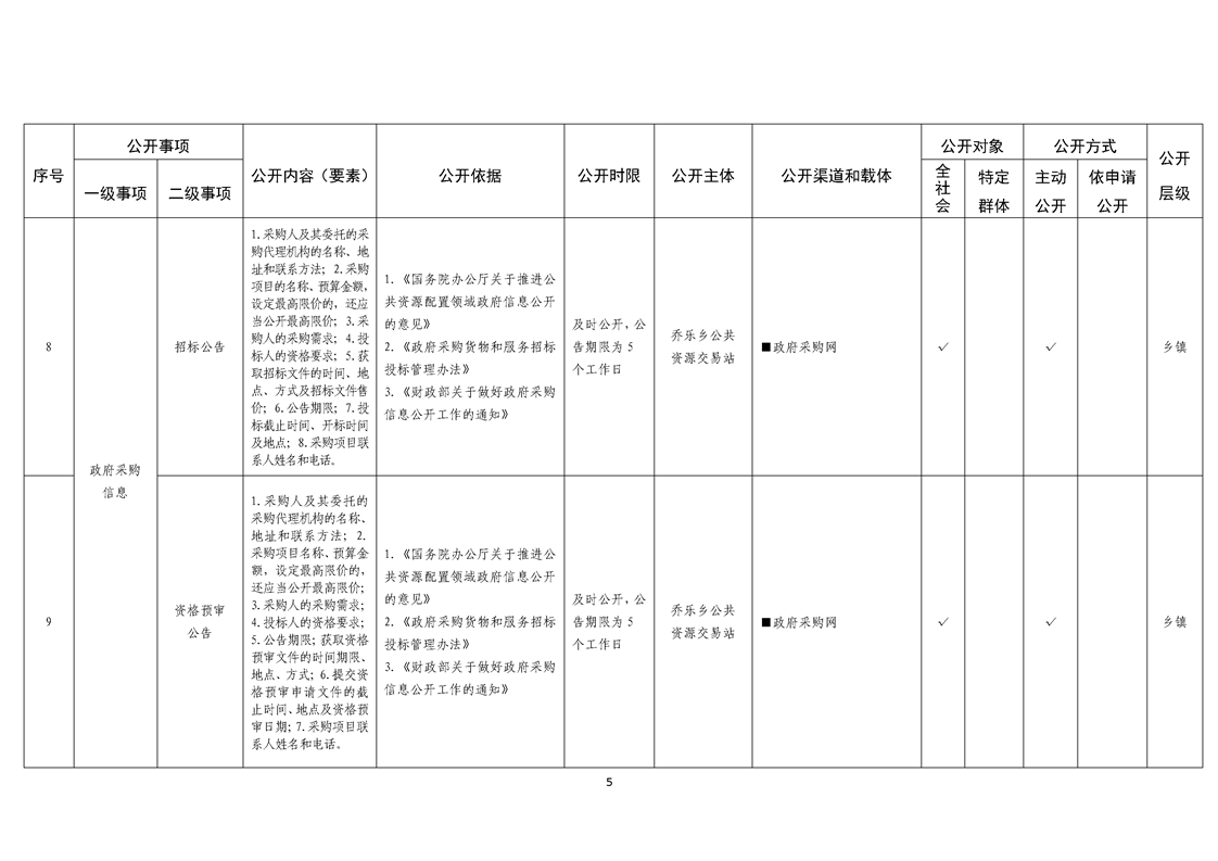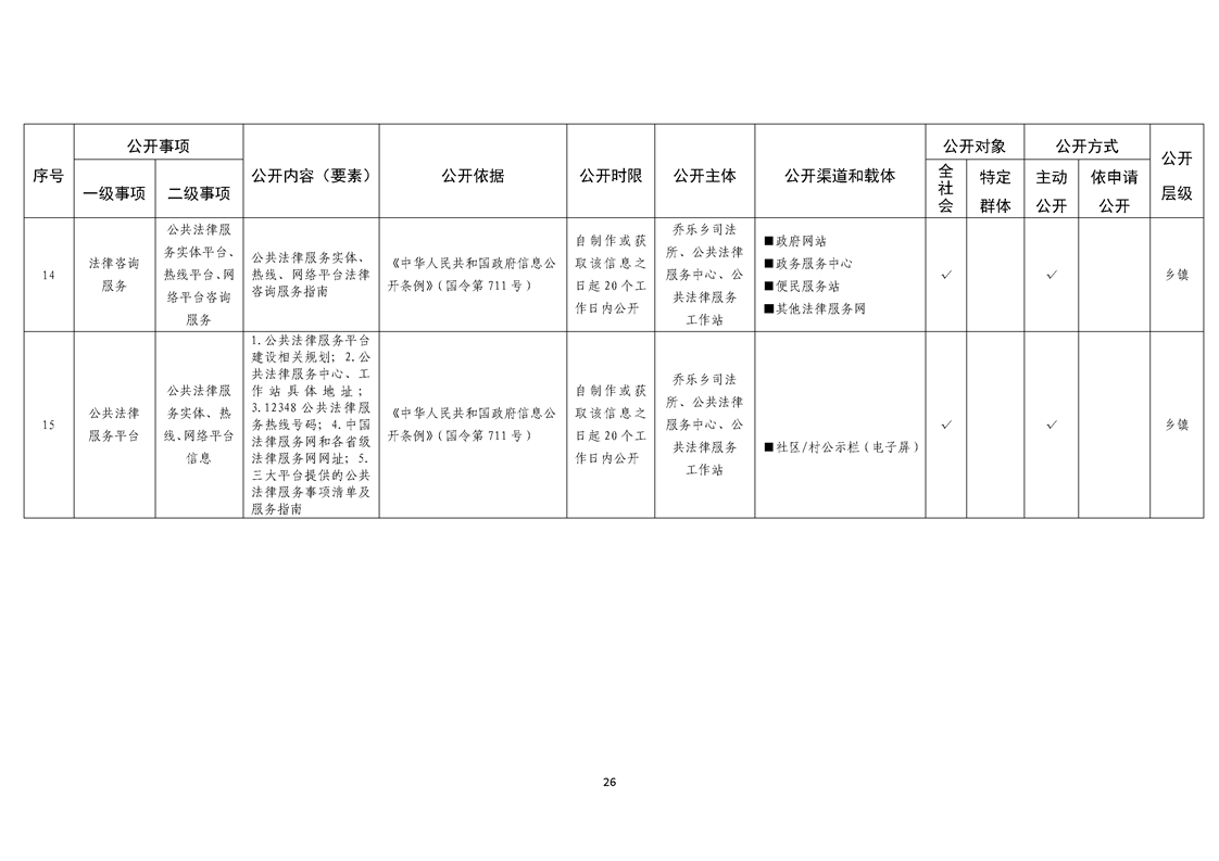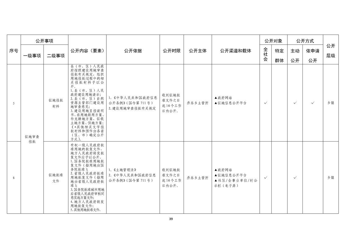 乔乐乡基层政务公开事项标准目录