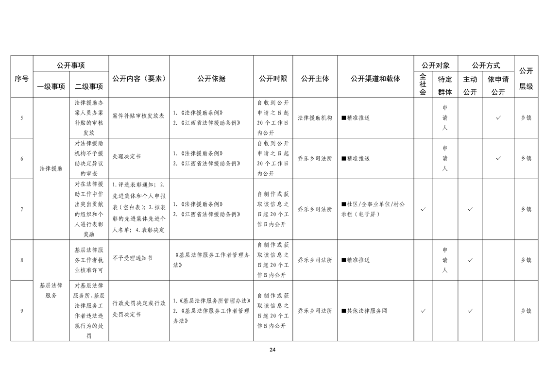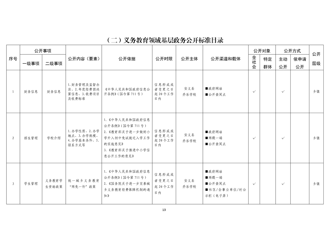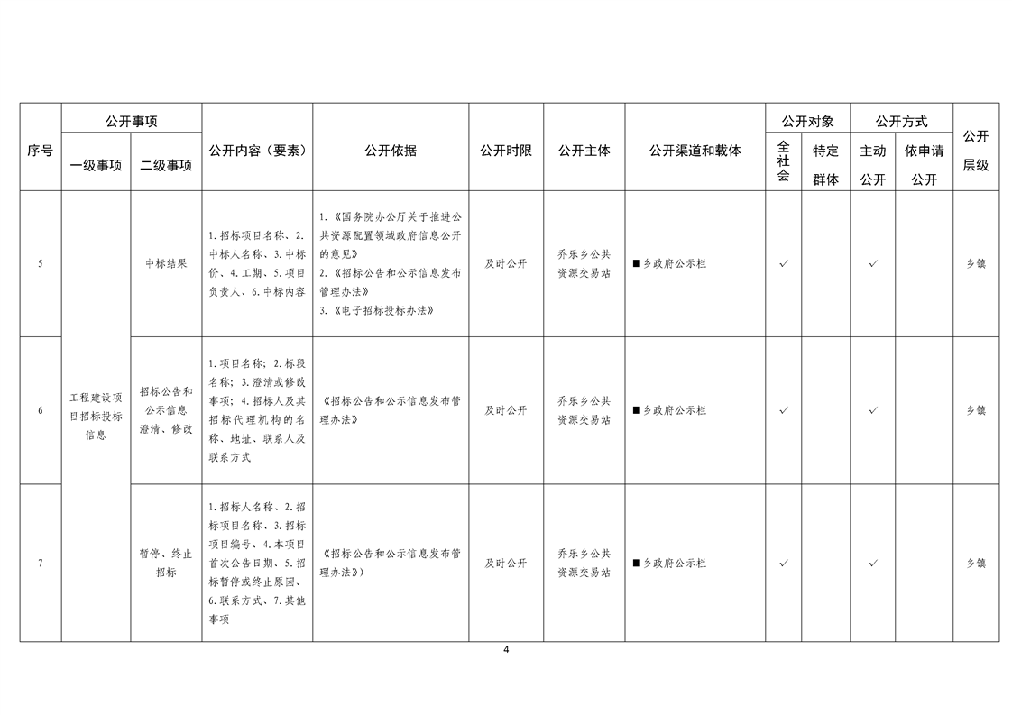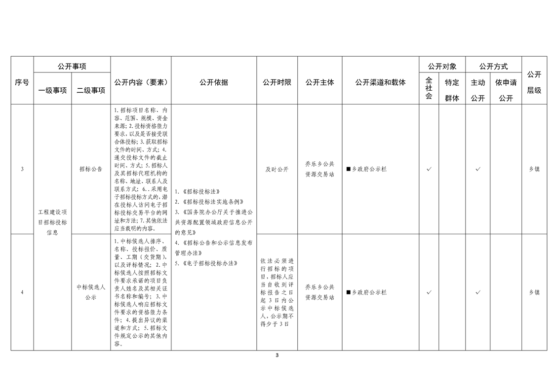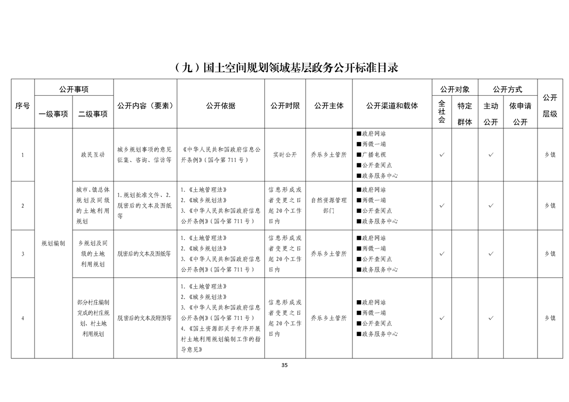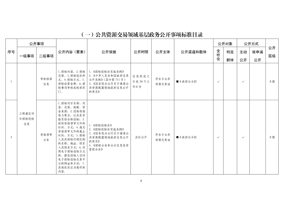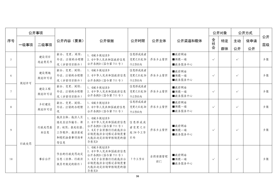 乔乐乡基层政务公开事项标准目录