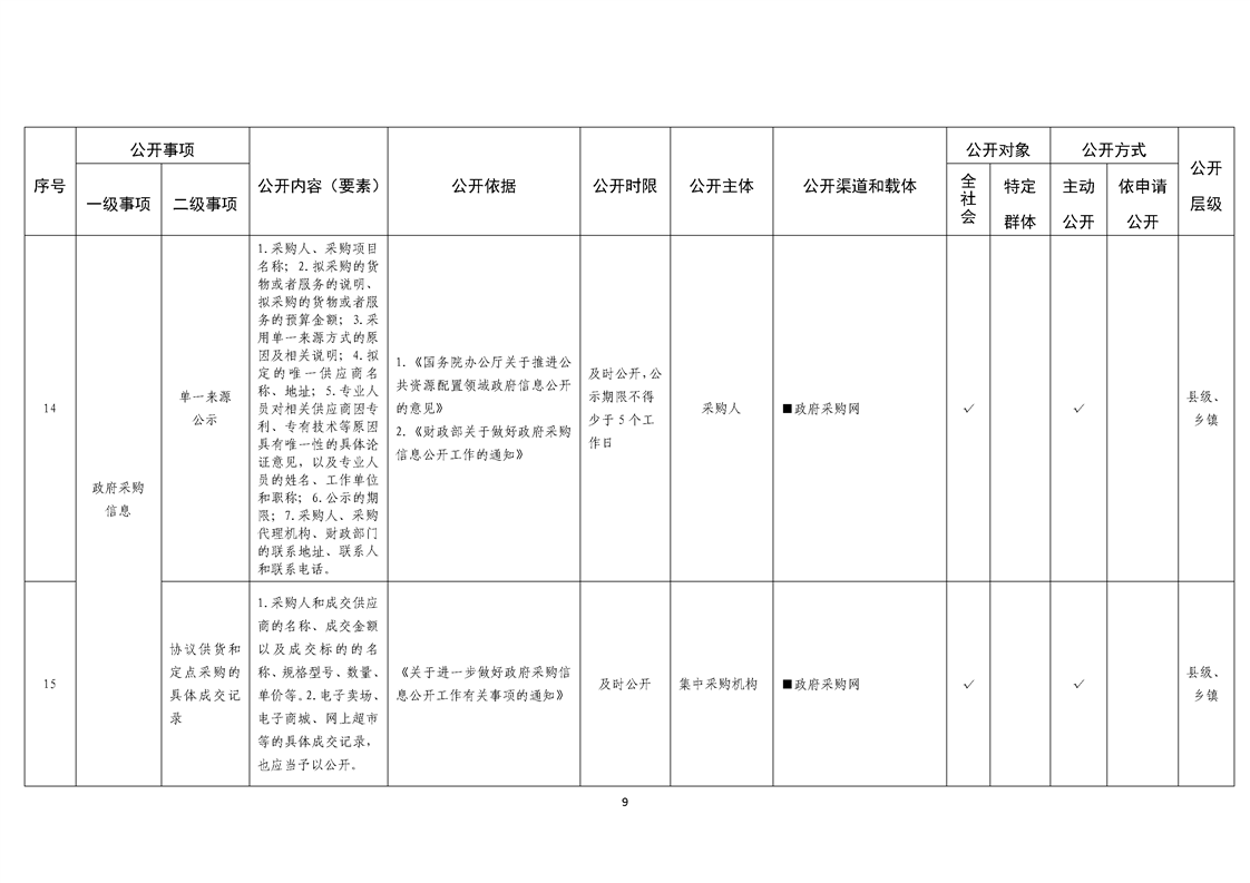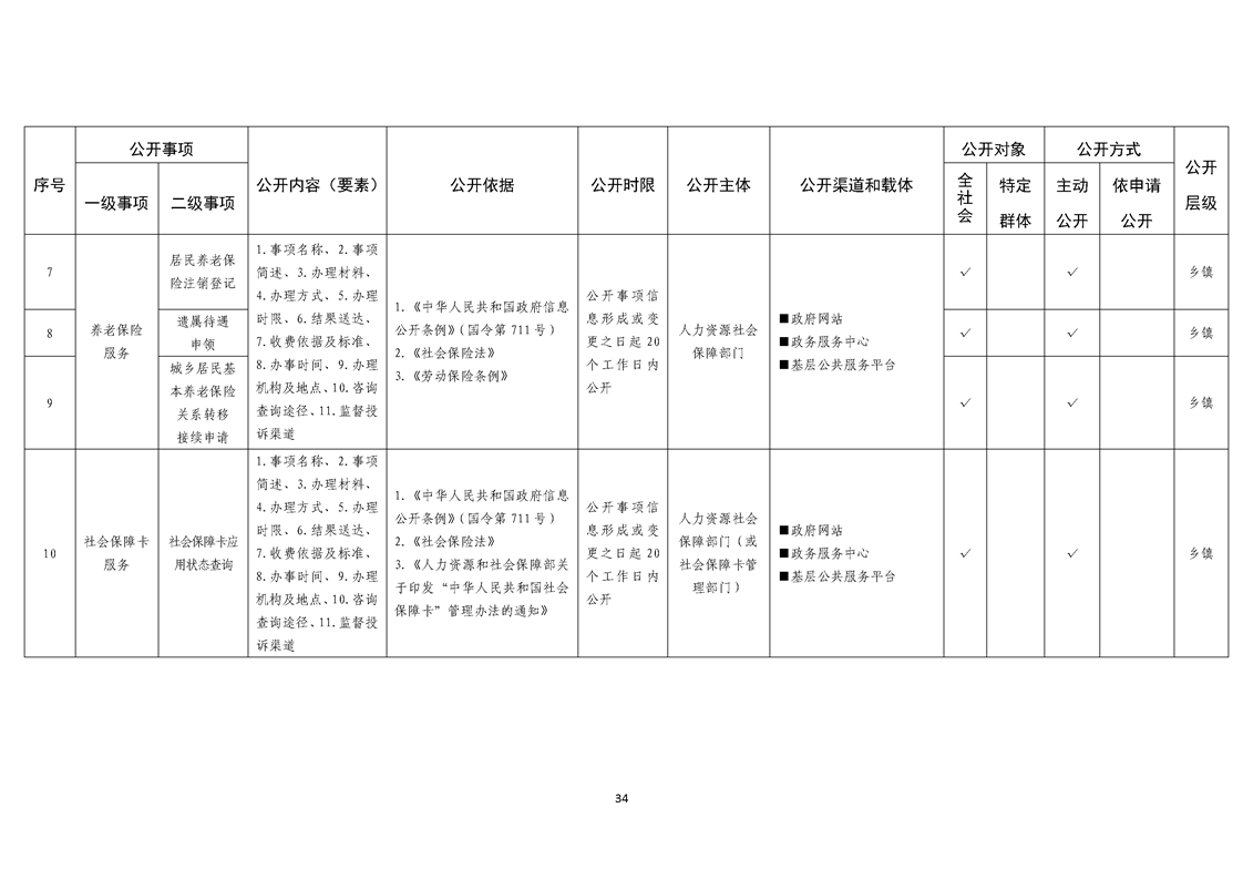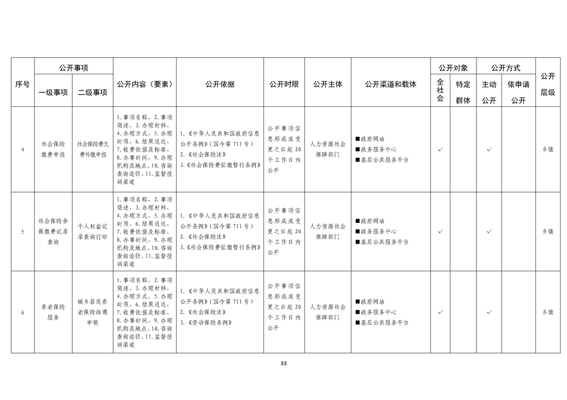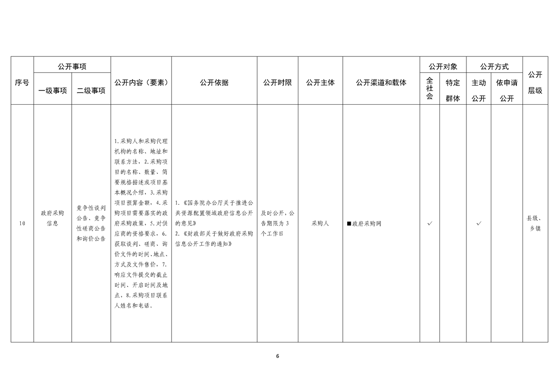 乡镇基层政务公开标准目录