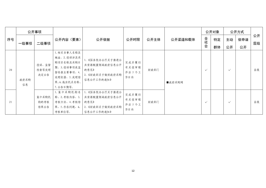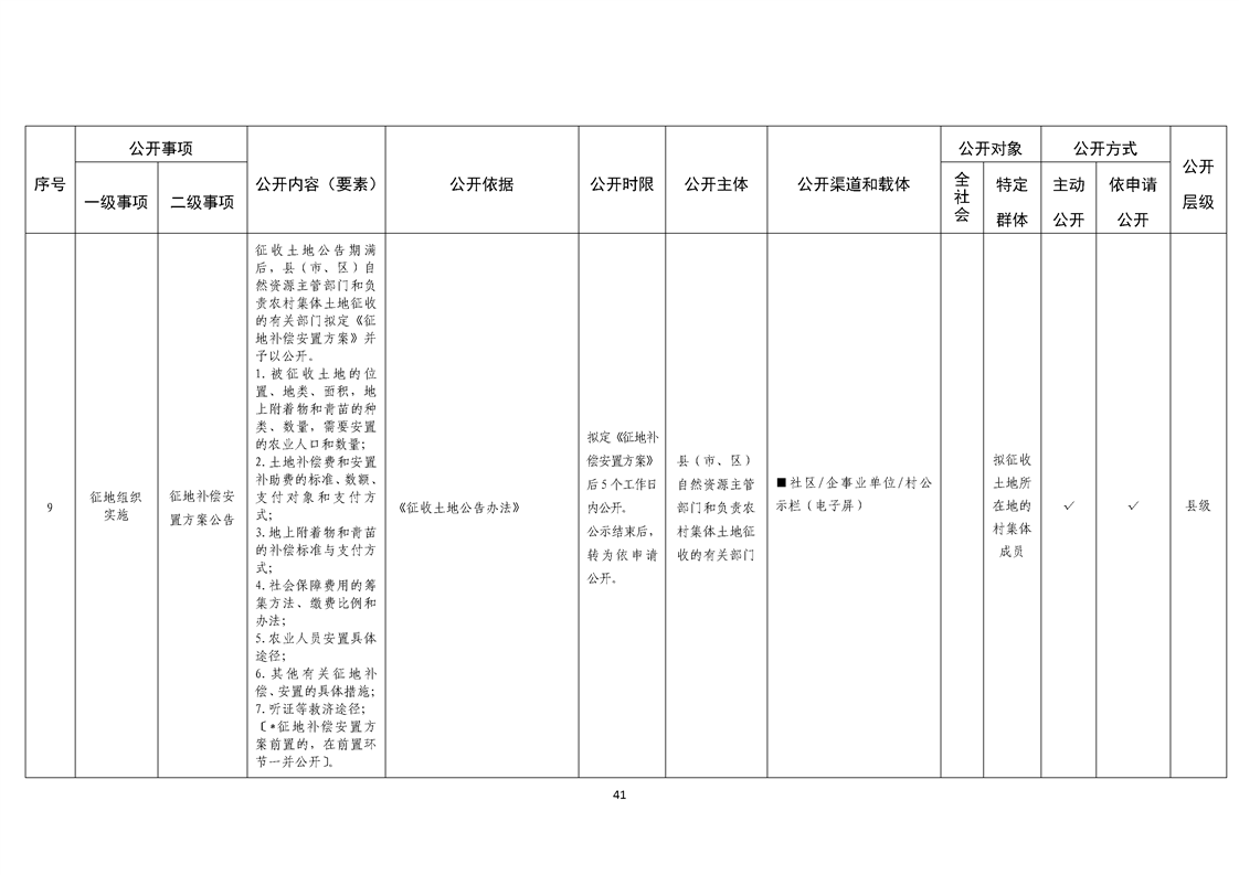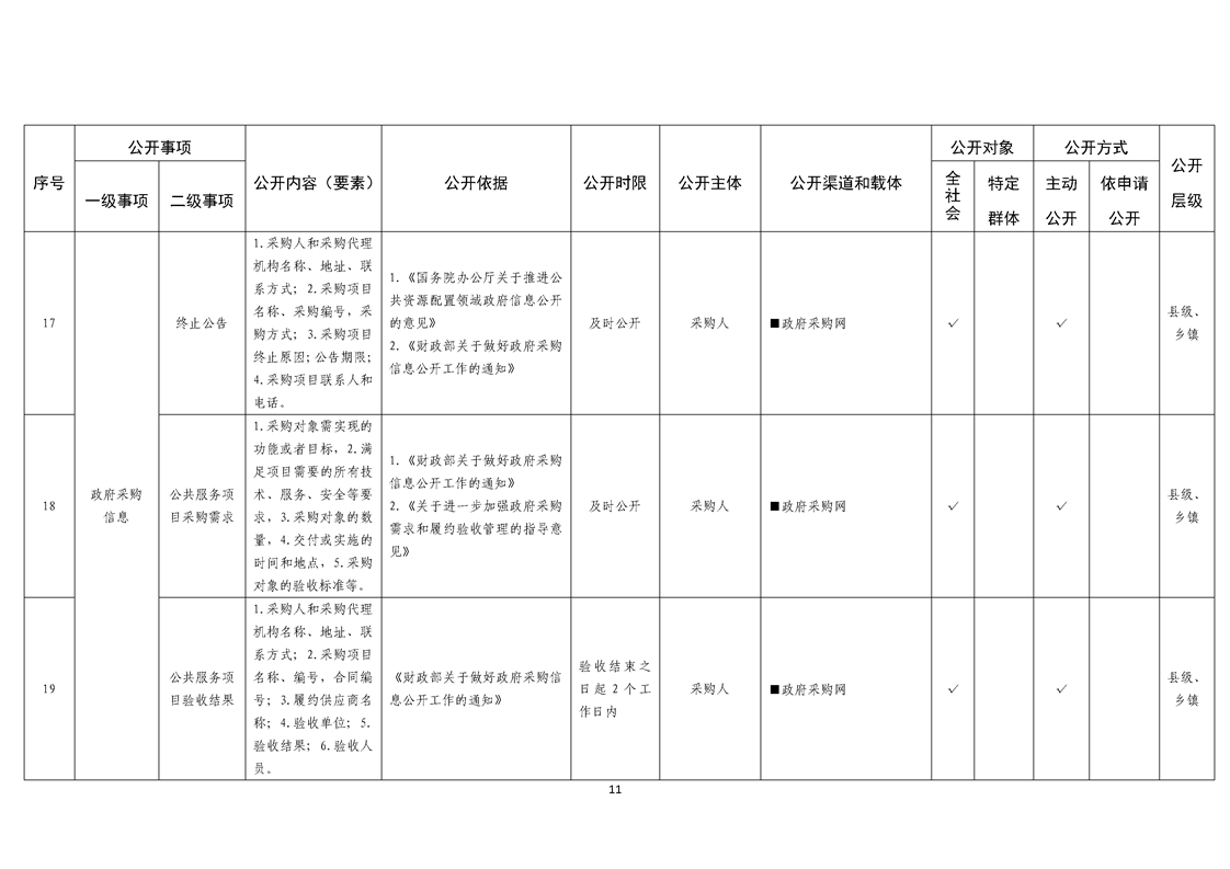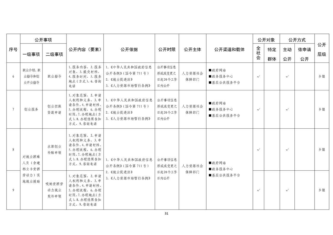 乡镇基层政务公开标准目录