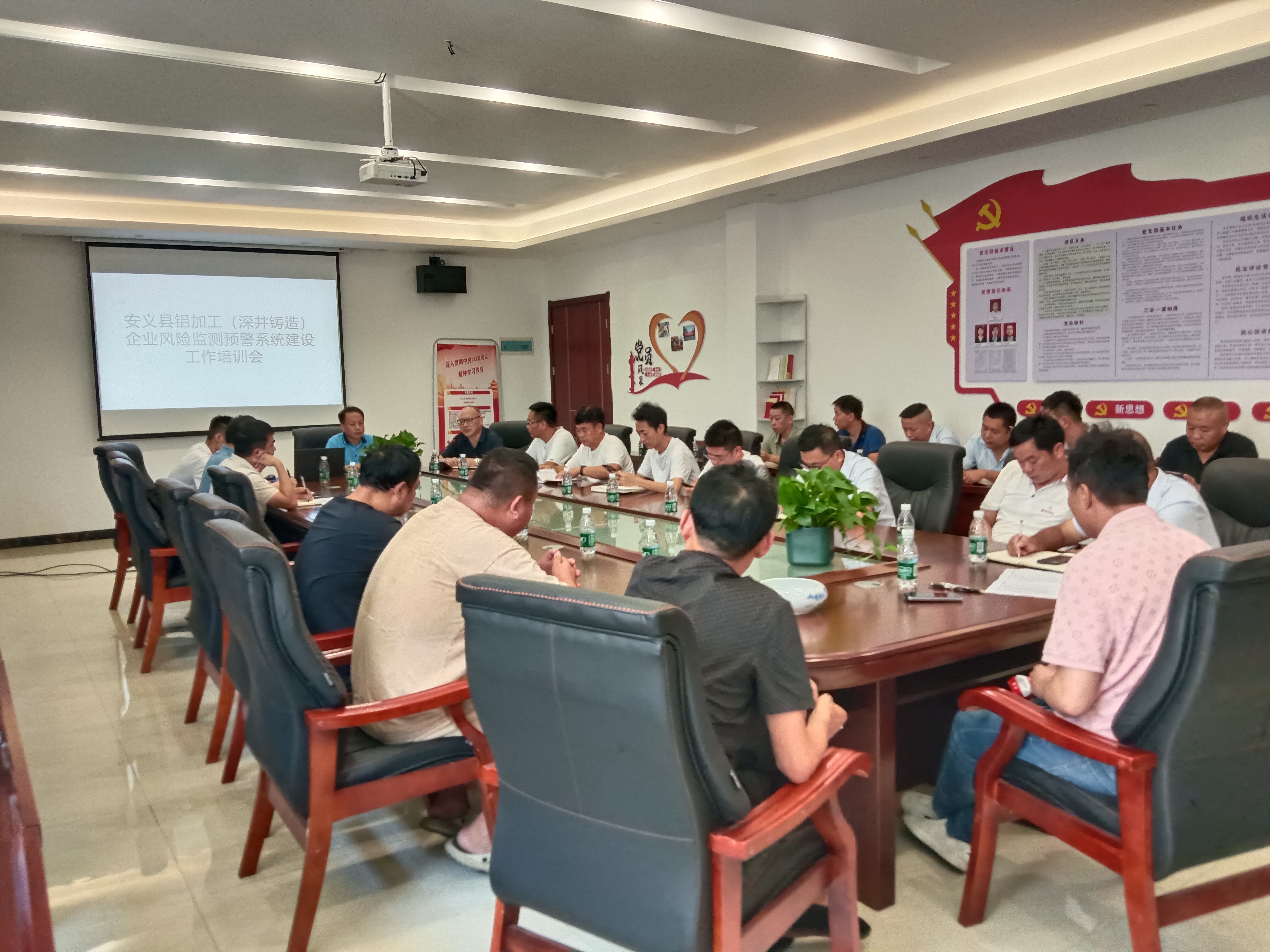 为进步规范我县铝加工(深井铸造)企业安全管理,降低企业事故风险,结合治本攻坚三年行动相关要求,9月15日下午,县应急局邀请相关专家在江西新龙丰铝业有限公司召开了安义县铝加工(深井铸造)企业风险监测预警系统建设培训会,会上专家先介绍了各企业风险监测预警系统建设的相关要求和具体实施细节,随后已完成建设的东阳铝业技术人员结合实际情况进一步讲解了如何购买相关设备、如何安装调试等注意事项,最后县应急局局长刘凤生对为什么要安装风险监测预警系统、安装该系统的好处、如何安装该系统进行了再次强调,要求各企业结合自身情况,务必在9月底前完成企业端的改造任务,为下一步省厅安装调试打好基础,按照时间节点完成治本攻坚三年行动要求,切实降低我想铝加工(深井铸造)企业运行风险,保证安全生产稳定有序。园区管委会分管领导、县铝型材协会负责人、各企业主要负责人和技术人员40余人参加。