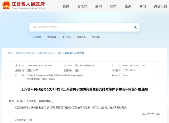 日前,江西省人民政府办公厅印发《江西省关于加快完善生育支持政策体系的若干措施》。其中提出,从2025年1月1日起,对符合法律法规规定生育的3周岁以下婴幼儿发放补贴,至其年满3周岁。