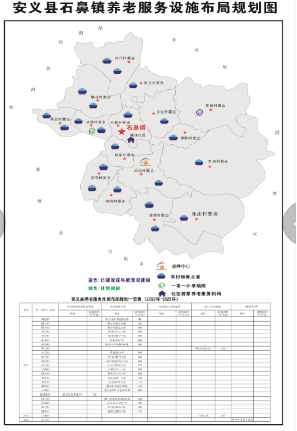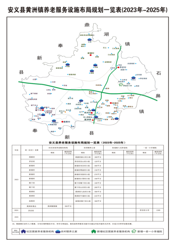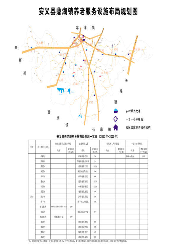 1.养老服务机构情况:全县现有养老服务机构14家,其中公建公营11家,公建民营3家,分别为:①安义县社会福利院(中心养老院),位于安义县曹操山民政局旁,建筑面积7012.99平方米,拟建设床位77张,预计2023年底投入使用。②龙津镇敬老院,位于城关镇龙津镇北面县委党校附近,建筑面积2000平方米,建设床位52张。③鼎湖镇敬老院,位于鼎湖镇莲花村,建筑面积1220平方米,建设床位40张。④万埠镇敬老院,位于万埠镇铁耙山,建筑面积660平方米。⑤石鼻镇敬老院,位于石鼻镇赤岗村,建筑面积2600平方米,建设床位40张。⑥东阳镇敬老院,位于东阳镇闵埠村,建筑面积479平方米。⑦长埠镇敬老院,位于长埠镇云庄村,建筑面积1500平方米,建设床位40张。⑧黄洲镇敬老院,位于黄洲镇圳溪村,建筑面积1200平方米。⑨乔乐乡敬老院,位于乔乐乡方岗街,建筑面积660平方米。⑩新民乡敬老院,位于新民乡新民村,建筑面积1454平方米。⑪长均乡敬老院,位于长均乡长均村,建筑面积750平方米。⑫安义县社会福利中心(公建民营),位于安义县曹操山民政局旁,建筑面积4200平方米,建设床位100张。⑬安义县老年公寓(公建民营),位于鼎湖镇敬老院,建筑面积1220平方米,建设床位80张。⑭安义县蔚蓝社区嵌入式养老院(公建民营),位于龙津镇文峰小区,建筑面积1000平方米,建设床位31张。