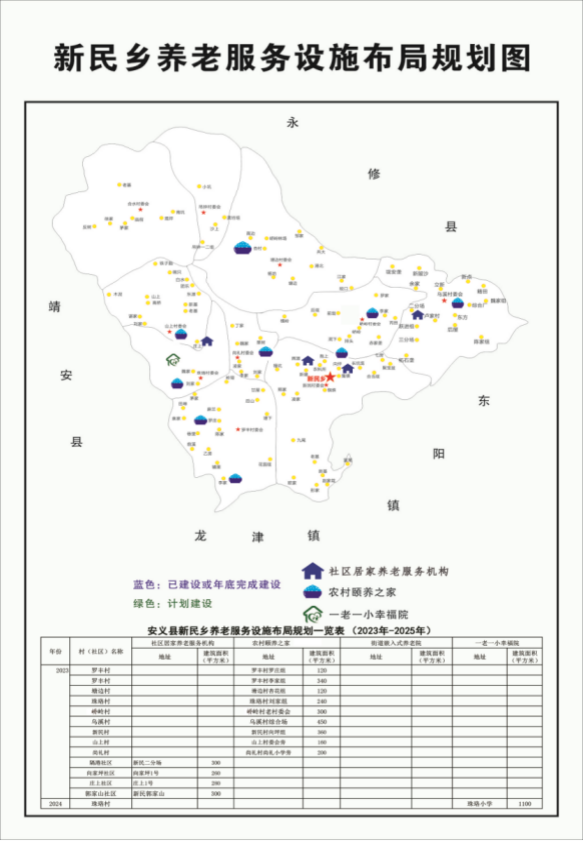 1.建设新建居住区配套养老服务设施。新建居住区配套建设养老服务设施达标率100%。[牵头单位:县住建局;责任单位:县住建局、县财政局、县自然资源和规划局、县发改委;完成时限:长期坚持]